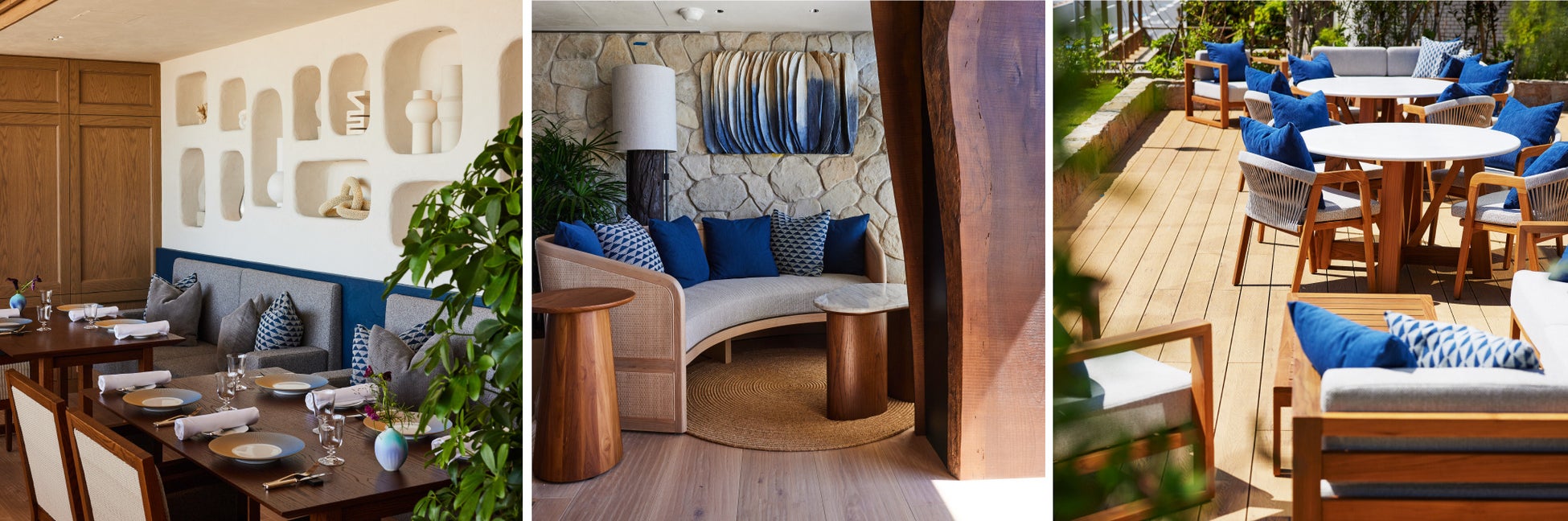 の海とのつながりを感じられるよう、波や海をテーマにしたアイテムで統一しています。ここでの食事