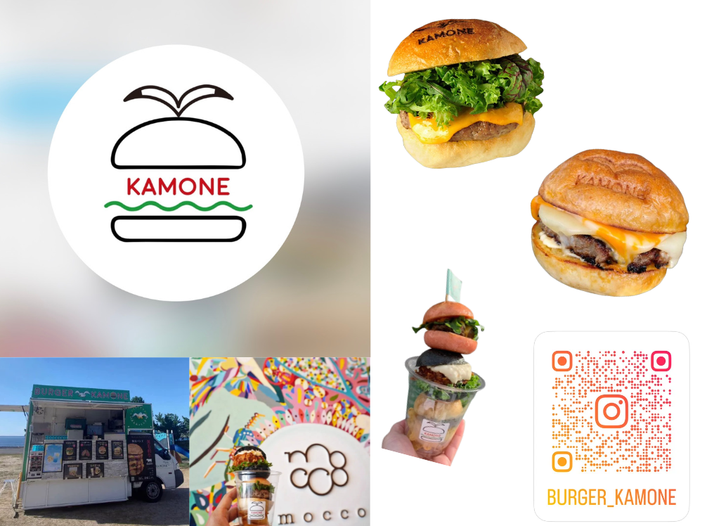 飲食経験24年のオーナーが、食材にこだわり抜いた美味しいハンバーガー屋さん。普段はキッチンカーで兵庫県内、大阪各所へ。出店先多数で、月に1度しか会えないと言われるKAMONEがmocco加古川にお目見え!この機会にぜひ♪