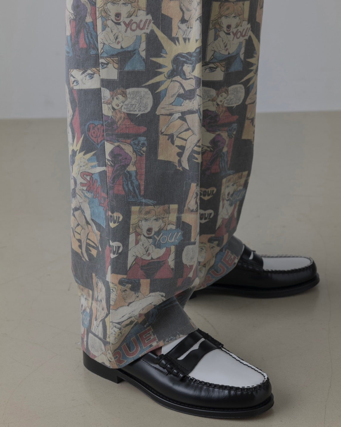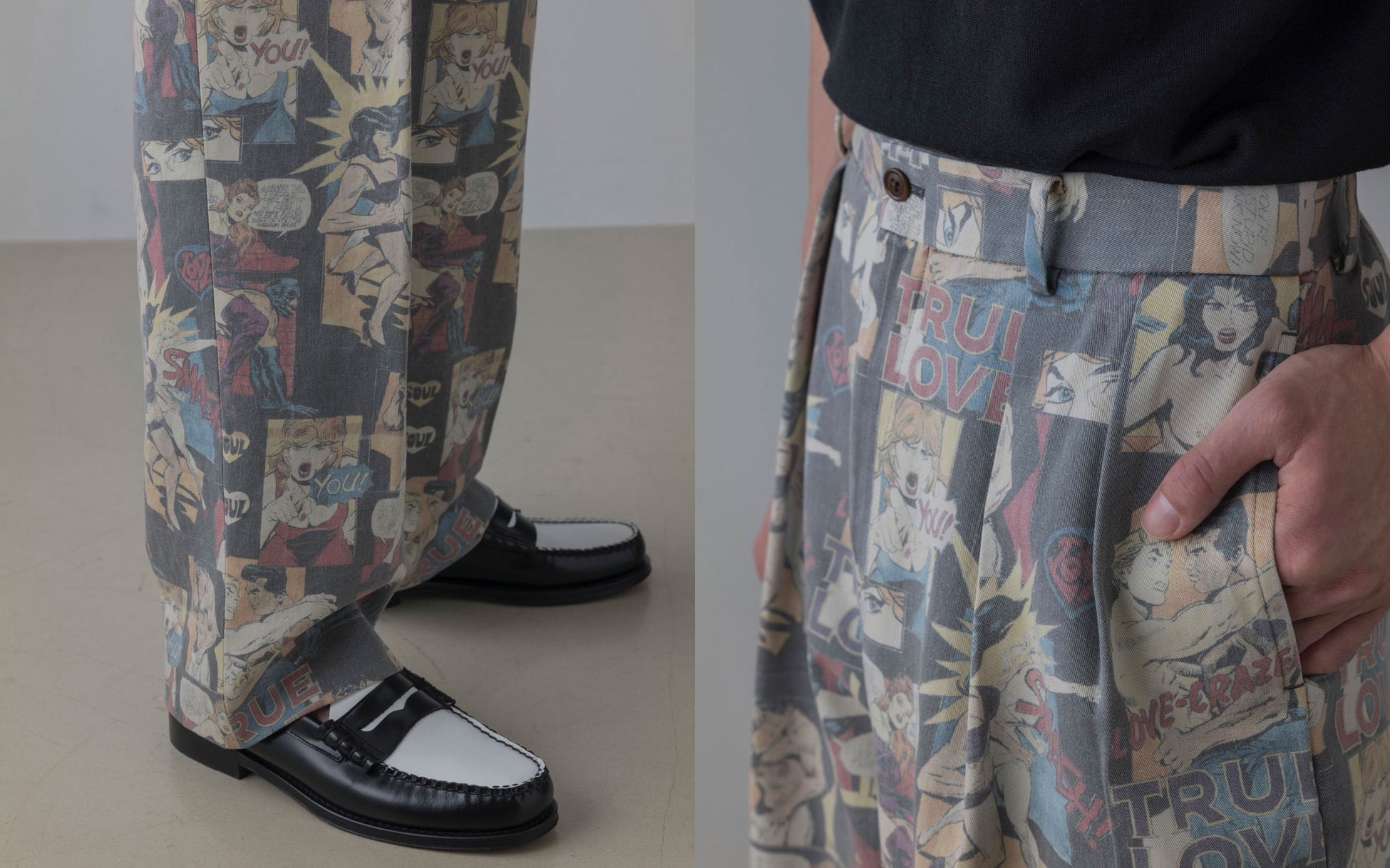 NEATは、KEITAMARUYAMA 1997-98AWシーズンのコレクションで発表されたゴッホ今泉氏によるアメコミ柄を、NEAT定番のNEAT CHINOにプリントしたトラウザーズを提案します。