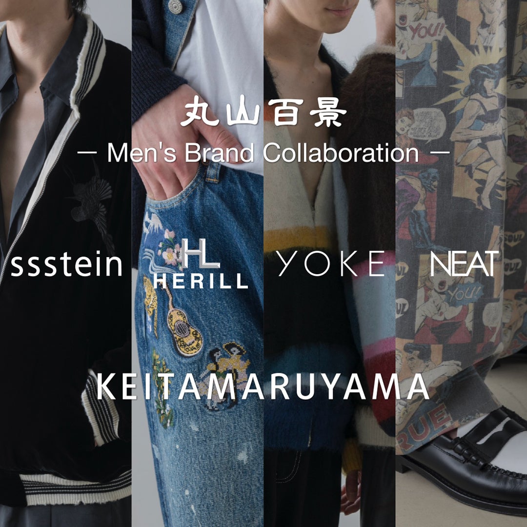 2024年、「KEITAMARUYAMA」(ケイタマルヤマ)は創業30周年を迎え、この記念すべき年に、東京を代表するメンズファッションブランド「HERILL(ヘリル)」「NEAT(ニート)」「ssstein(シュタイン)」「YOKE(ヨーク)」の4ブランドとのコラボレーションアイテムをローンチします。本コラボレーションでは、丸山敬太の下でスキルを磨いたHERILLのデザイナー、大島裕幸氏を中心に各ブランドの個性を活かしながら、KEITAMARUYAMAの魅力を融合させた特別なアイテムが制作されました。