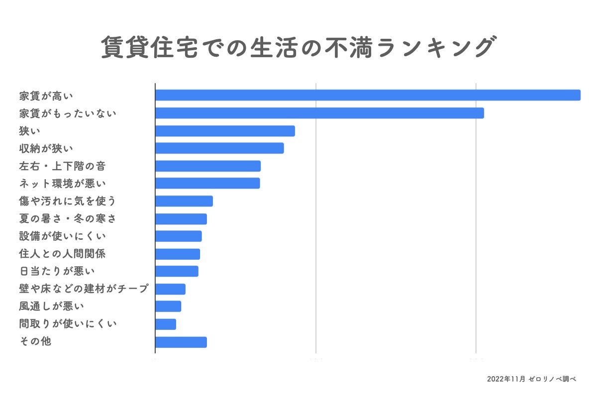 賃貸住宅での生活の不満ランキングは以下の結果に。それぞれどのような不満があるのか、コメント(原文)とともにご紹介します。