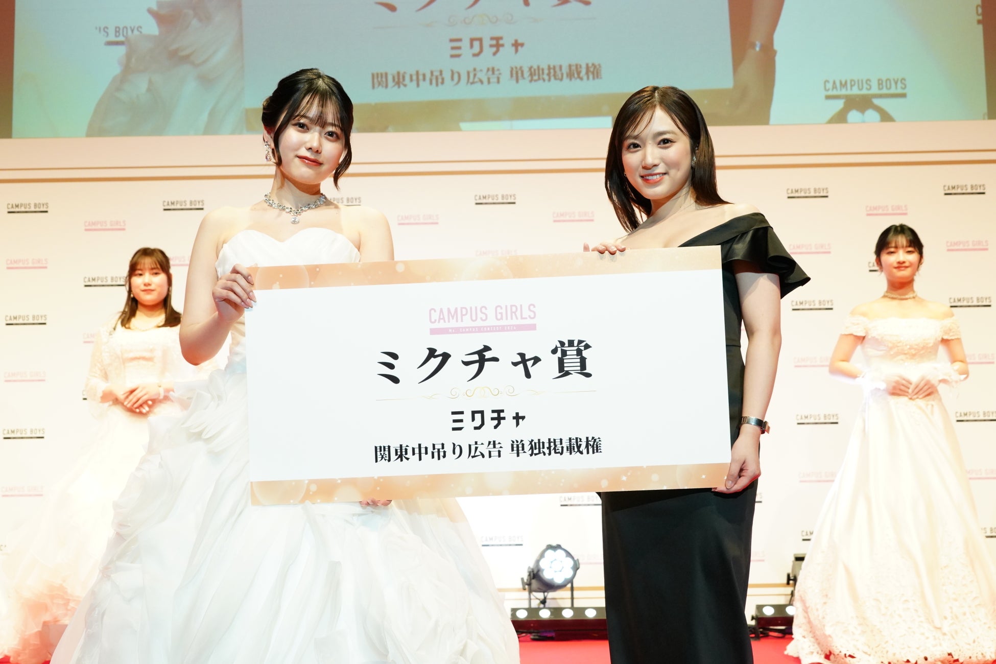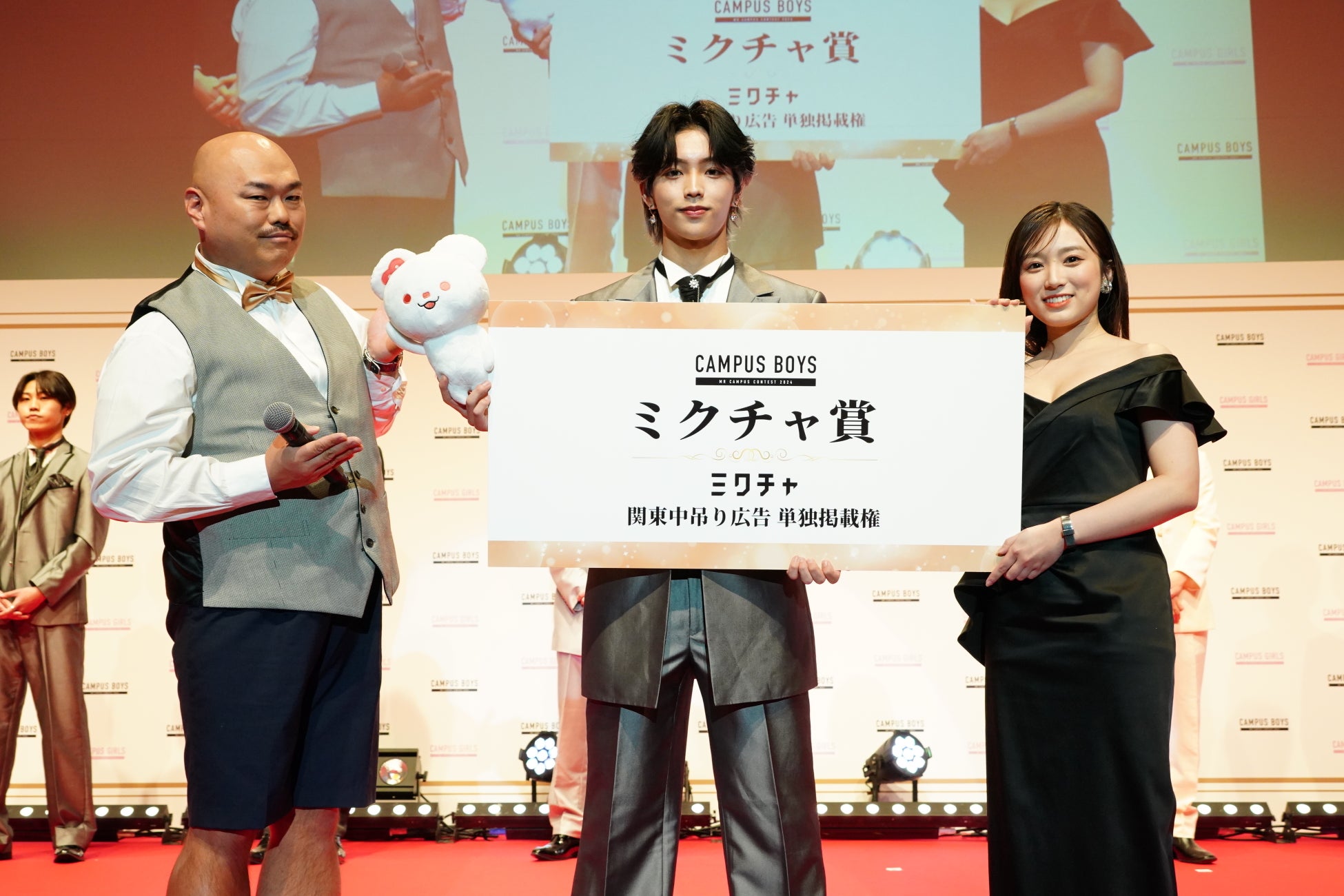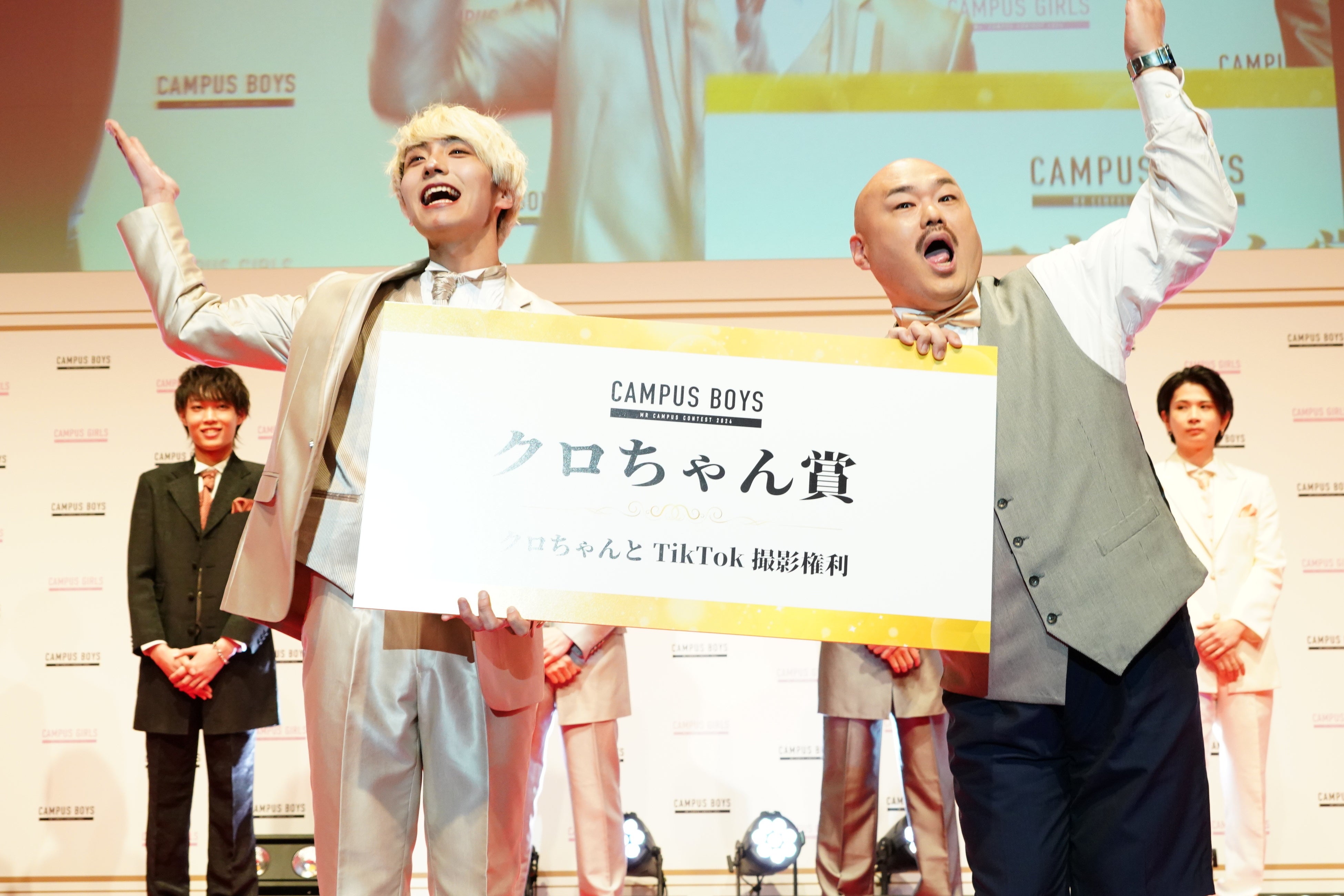 「CAMPUS BOYS 2024」「CAMPUS GIRLS 2024」の授賞式では、メインMCに登坂淳一さん、ゲストMCにクロちゃん(安田大サーカス)に加え、応援アンバサダーとして矢吹奈子さんが登場しました。