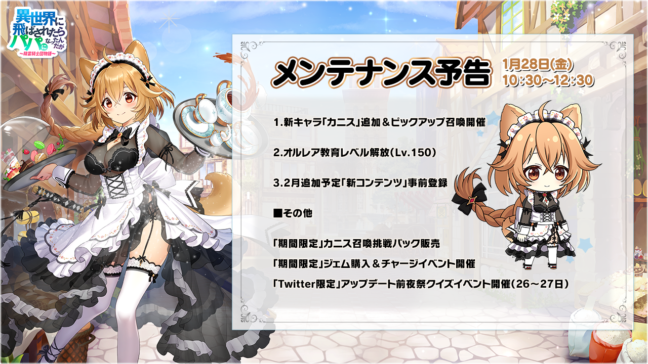 ※メンテナンス中はゲームをプレイすることができません。