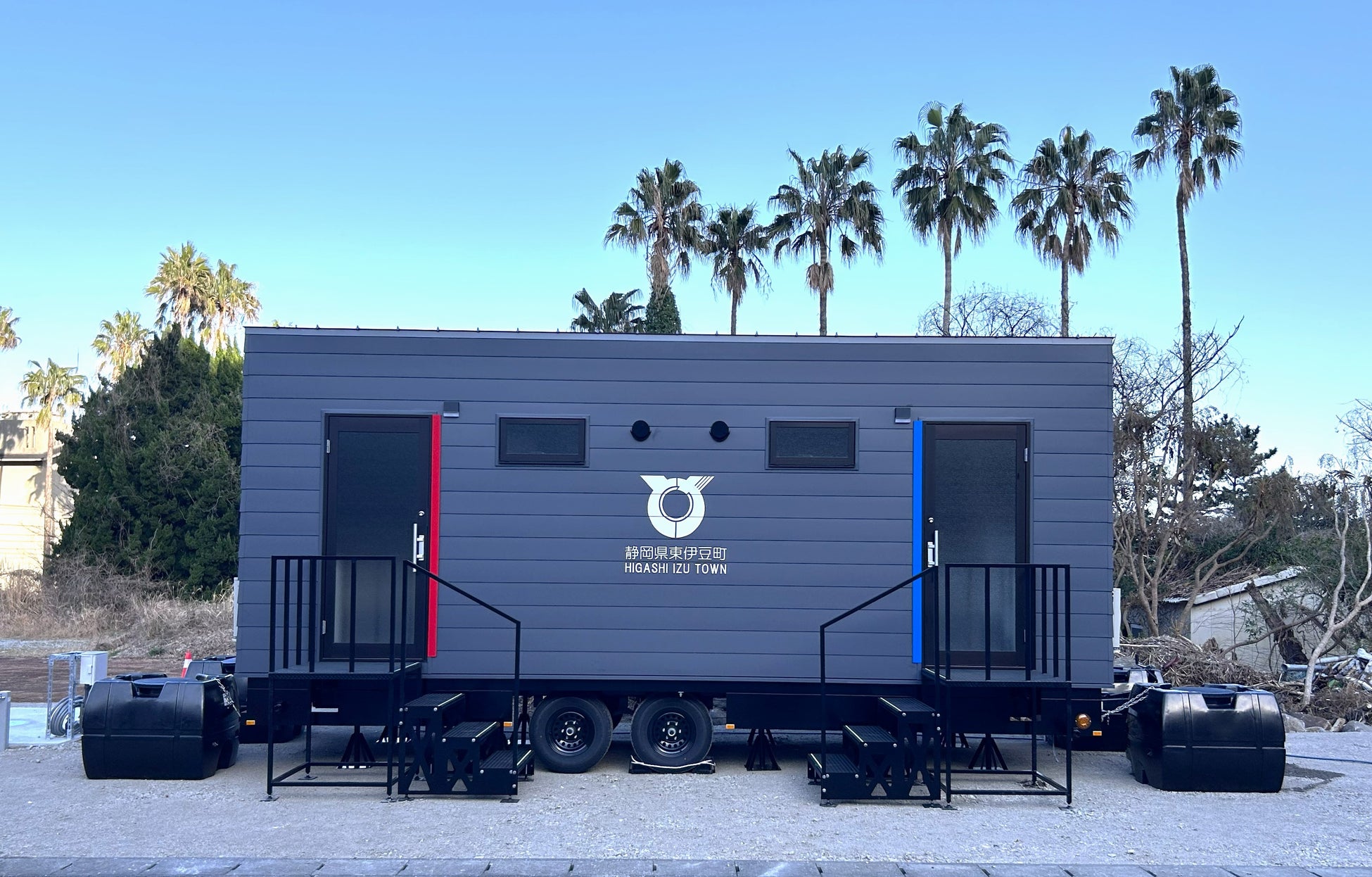 株式会社エリアノ、フェーズフリー認証取得の「災害対応 超節水型トイレトレーラー」を静岡県東伊豆町に納品いたしました