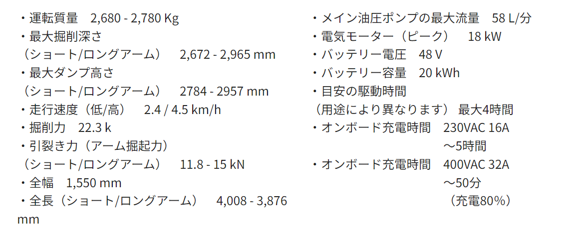 ●電動コンパクト油圧ショベルの新シリーズの第一弾
