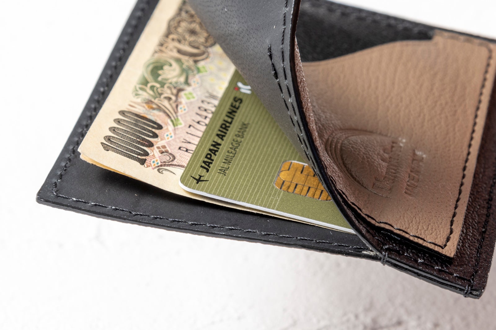 カードや紙幣が落ちないように、落下防止のステッチを入れている細部への配慮は、L’arcobalenoらしい気遣いと、イタリア職人の卓越した技術ならでは。