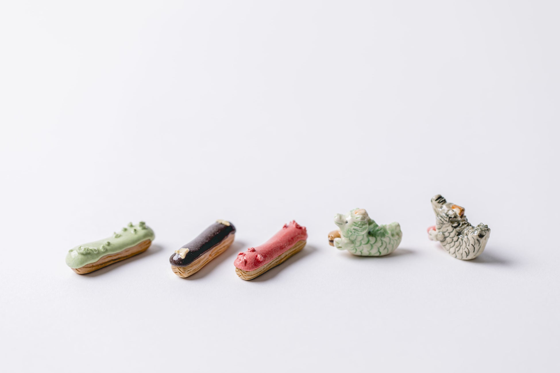 地元の陶芸家によって製作される2024年のフェーブは干支の辰とエクレアのかたちをしており、ランダムで付いてくるため何がゲットできるかお楽しみに。