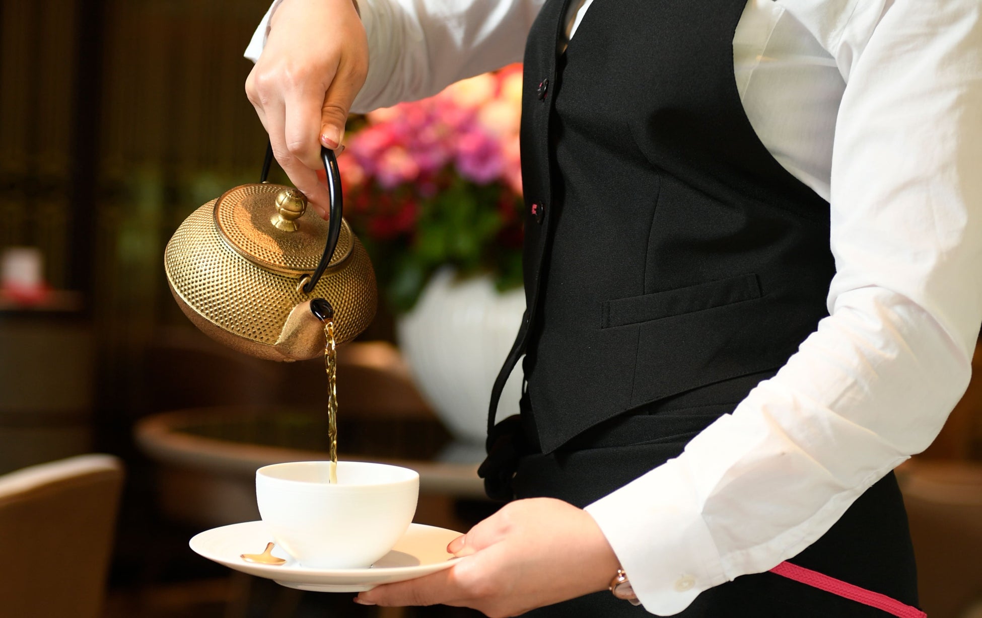 ロビーを抜け階段を上ると目の前に広がるティーサロン「サロン ド テ フォション」。パリと京都がエレガントに融合する、日常とは一線を画すくつろぎの空間が広がります。アフタヌーンティーだけでなく、パリで人気のシグネチャースイーツや限定フレーバーティーなど様々にご用意しております。