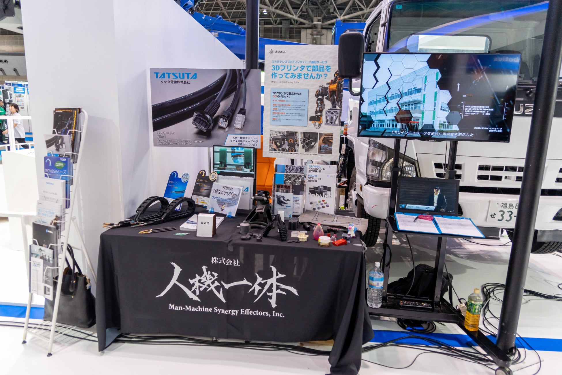 また、本展示会では、人機一体の協力企業様による展示も実施させていただき、株式会社椿本チエイン、株式会社タダノと共同開発中の「人機並進駆動ユニット ver.5.0」による力制御の体験、そして零式人機 ver.2.0 にも使用されているタツタ電線株式会社の電線部品、株式会社ストラタシス・ジャパンの 3D プリンタの紹介を行ないました。