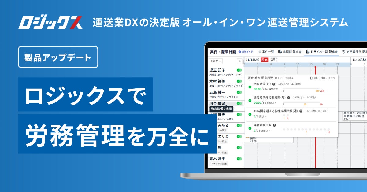物流DXを推進するアセンド株式会社(本社:東京都新宿区、代表取締役:日下瑞貴、以下「当社」)は、トラック運送事業者向けに提供している業務管理クラウドシステム「ロジックス」における労務管理機能のアップデートを行いましたので、お知らせいたします。