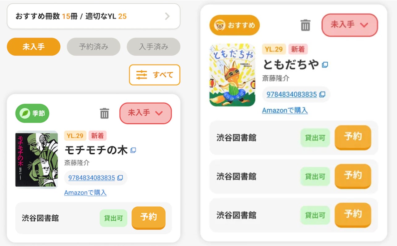 本の予約状況が直感的に把握できるよう、管理画面のUIを刷新。本の予約状況の確認や管理がよりスムーズに操作できるようになりました。