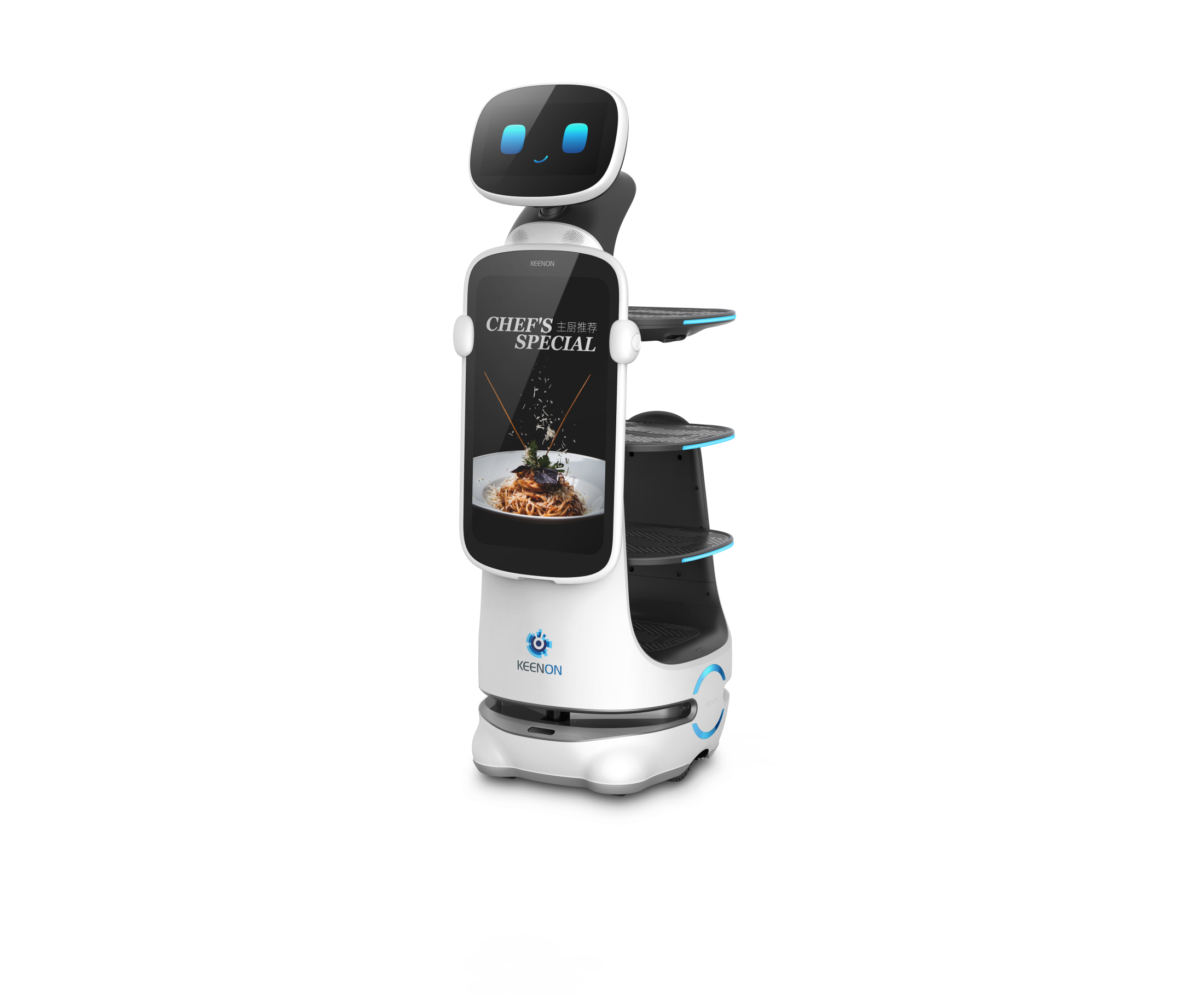 T10:KEENONの最新機種の配送ロボットです。大型ディスプレイが搭載されており、ストリーミング広告のサポートやカスタム動画・ビデオの再生が可能です。また、4台の立体ビジョンカメラによって360度の視覚検測を行うことで、配送プロセスの安全性が強化されています。