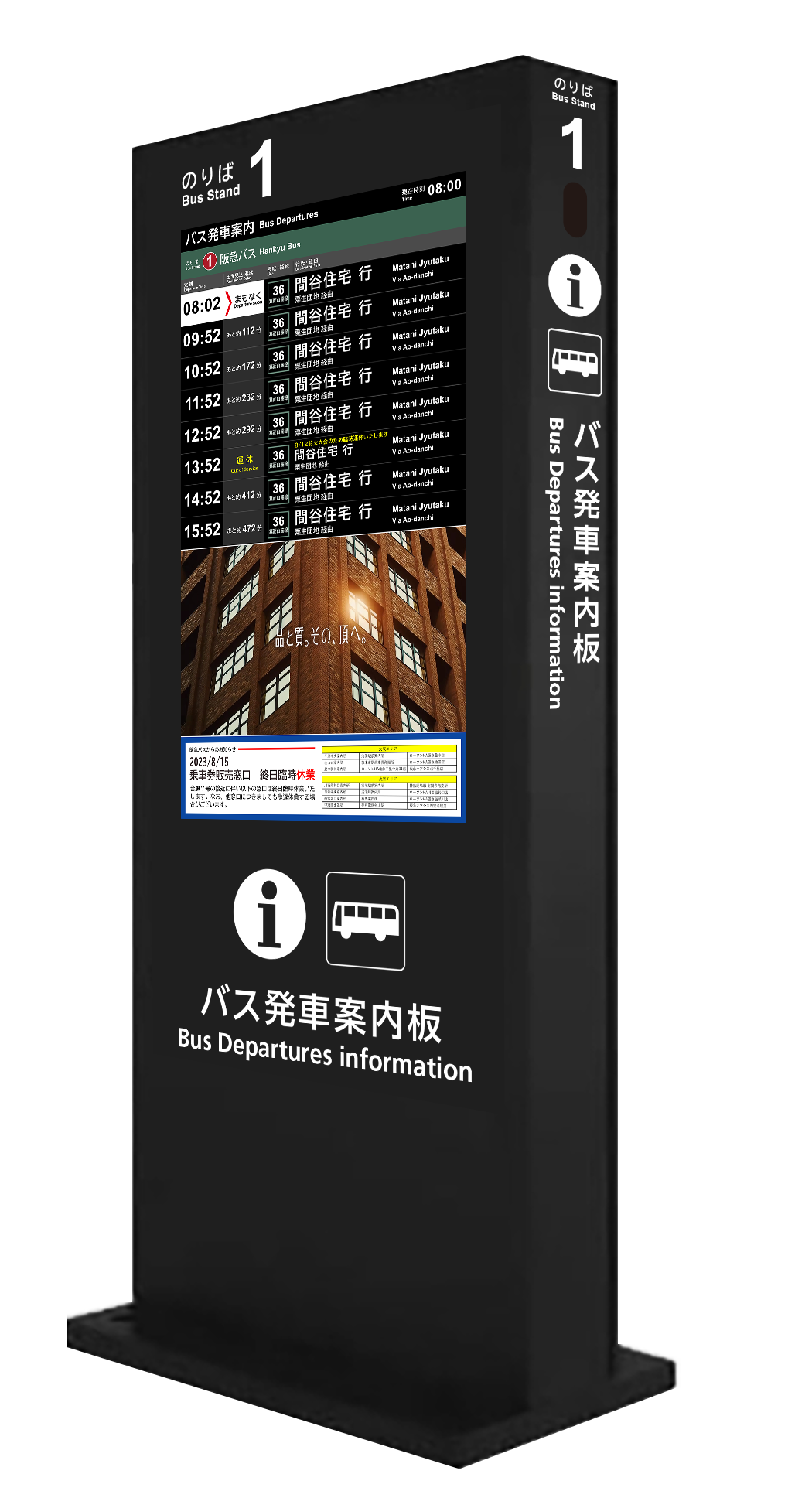 北大阪急行線の新駅開業に伴いリニューアルされた箕面市のバス案内用デジタルサイネージ広告を販売