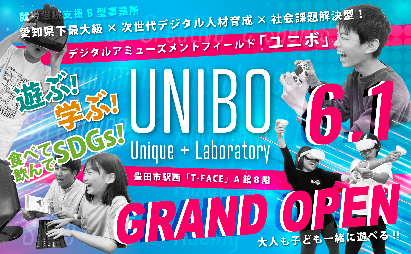 愛知県下最大級×デジタル人材育成×SDGs!障がい者就労支援で運営する【次世代型デジタルハイブリッドアミューズメントフィールド&カフェ「UNIBO」】6月1日グランドオープン