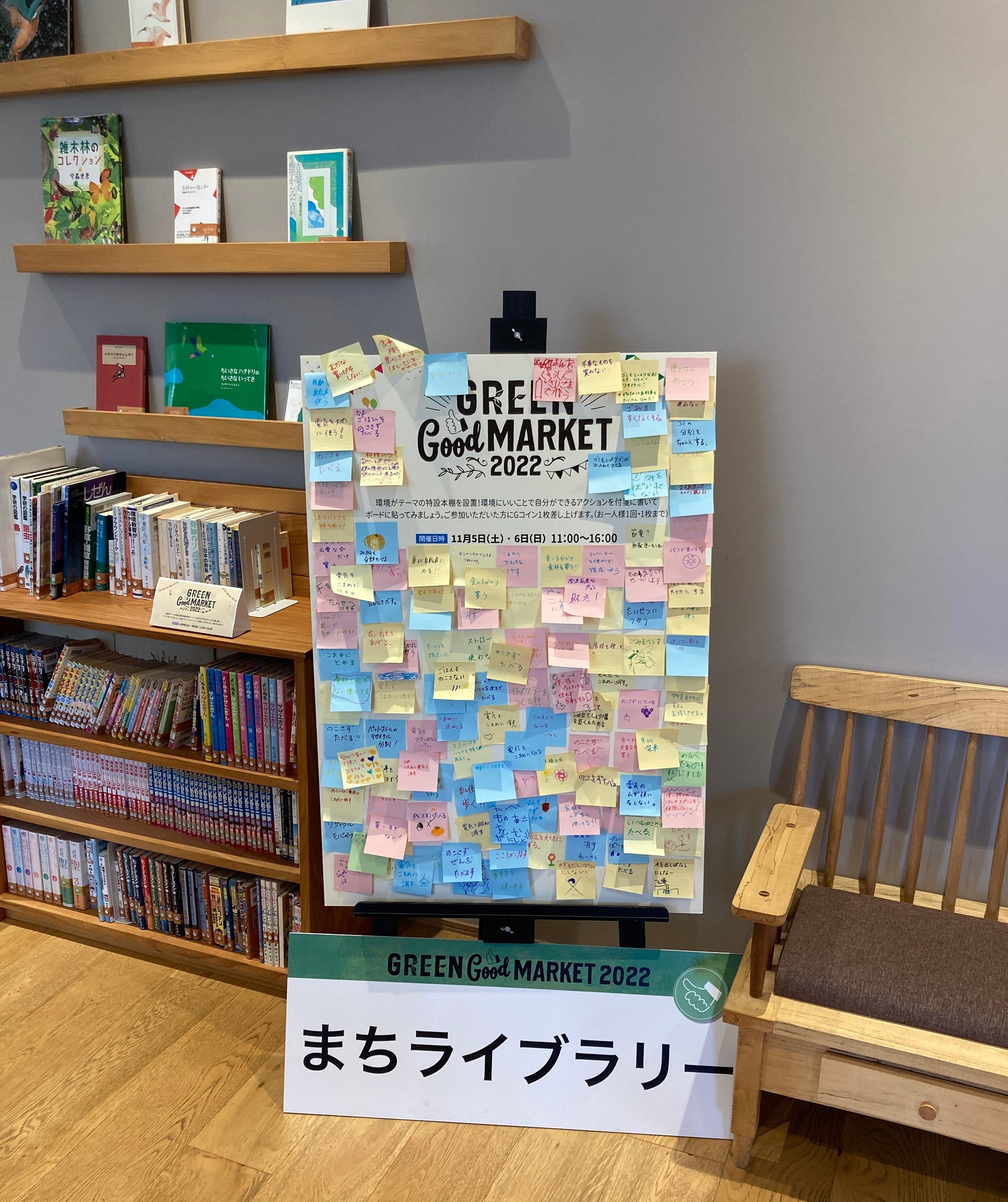 環境のために自分ができることを付箋に書きボードに貼り出す「環境宣言」や、環境に関する本のコーナーを設置します。