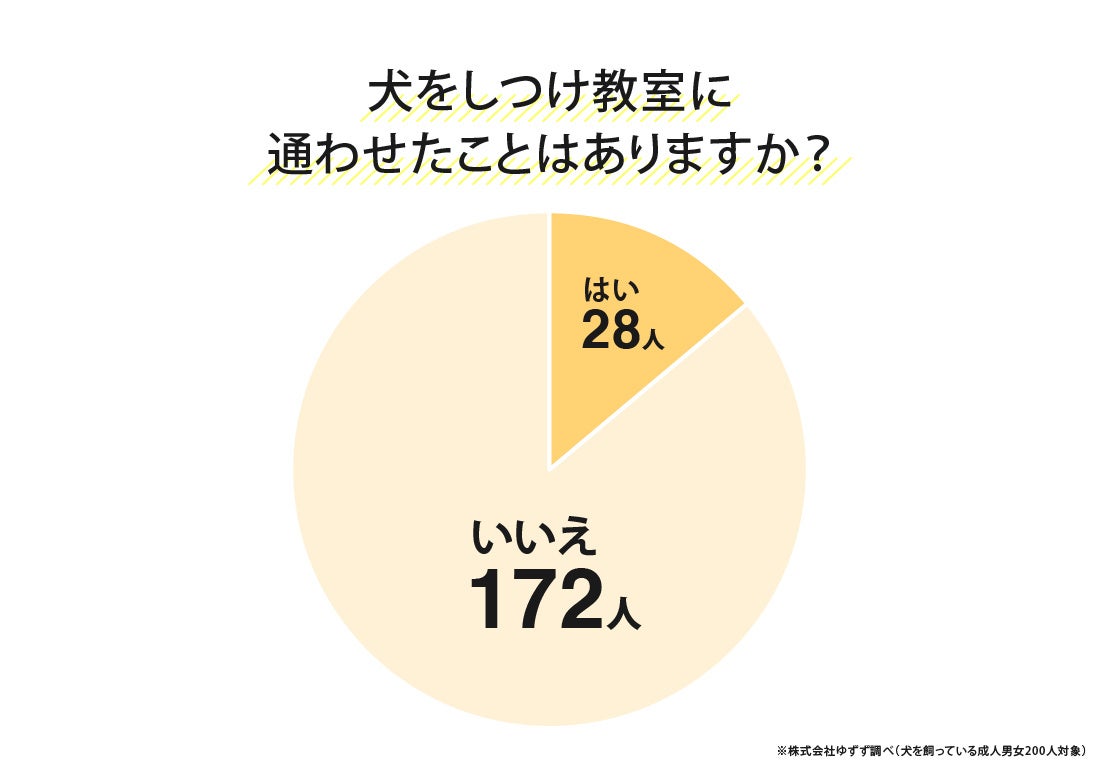 犬を飼っている成人男女200人に「犬をしつけ教室に通わせたことはありますか?」というアンケートをとった結果、「通わせたことがある」と答えた飼い主は、全体の約1割に留まりました。