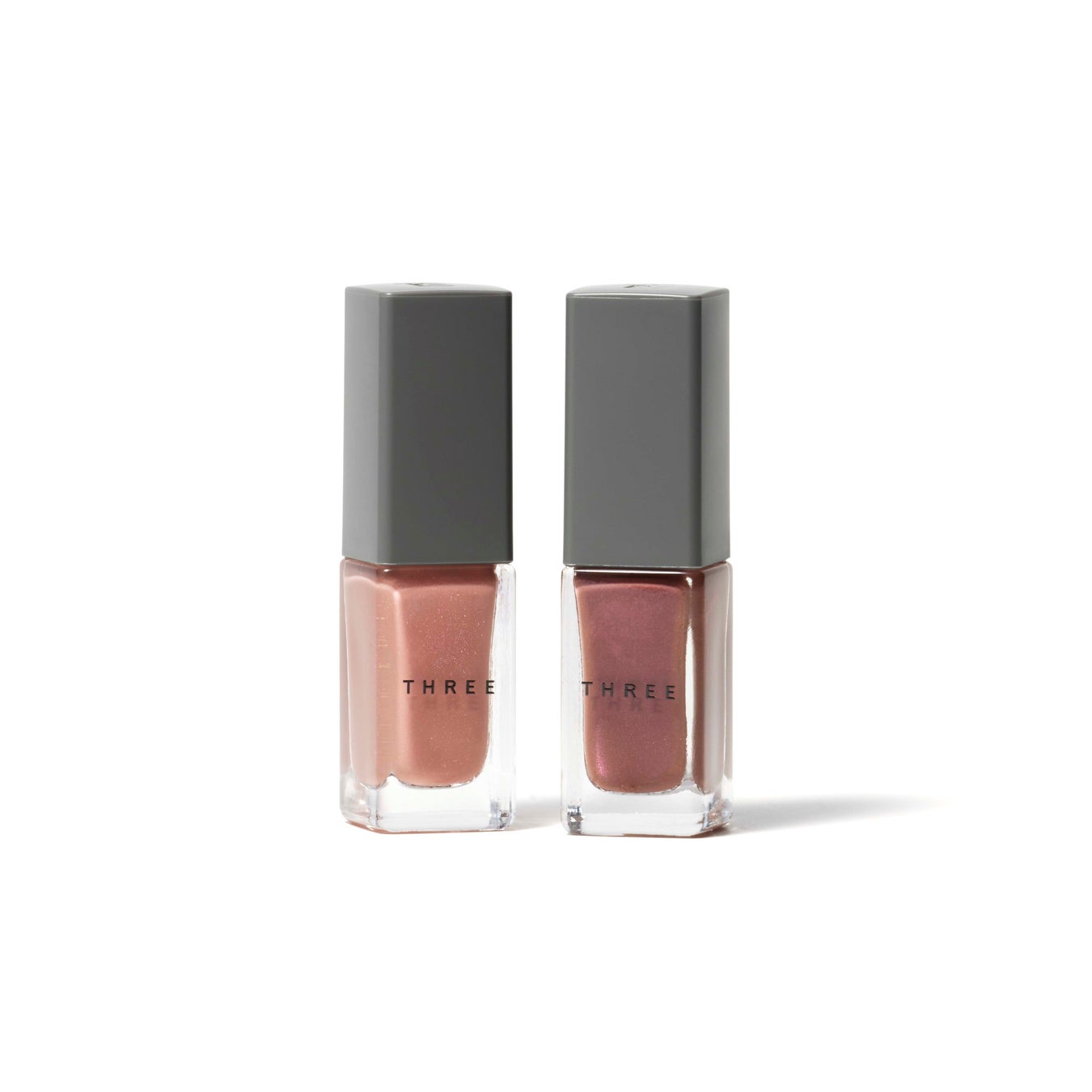 控えめにスイートなピンキッシュベージュと甘くビターなマホガニーブラウンのネイルポリッシュには、ピュアでありながらも魅惑的なローズパールを配合。