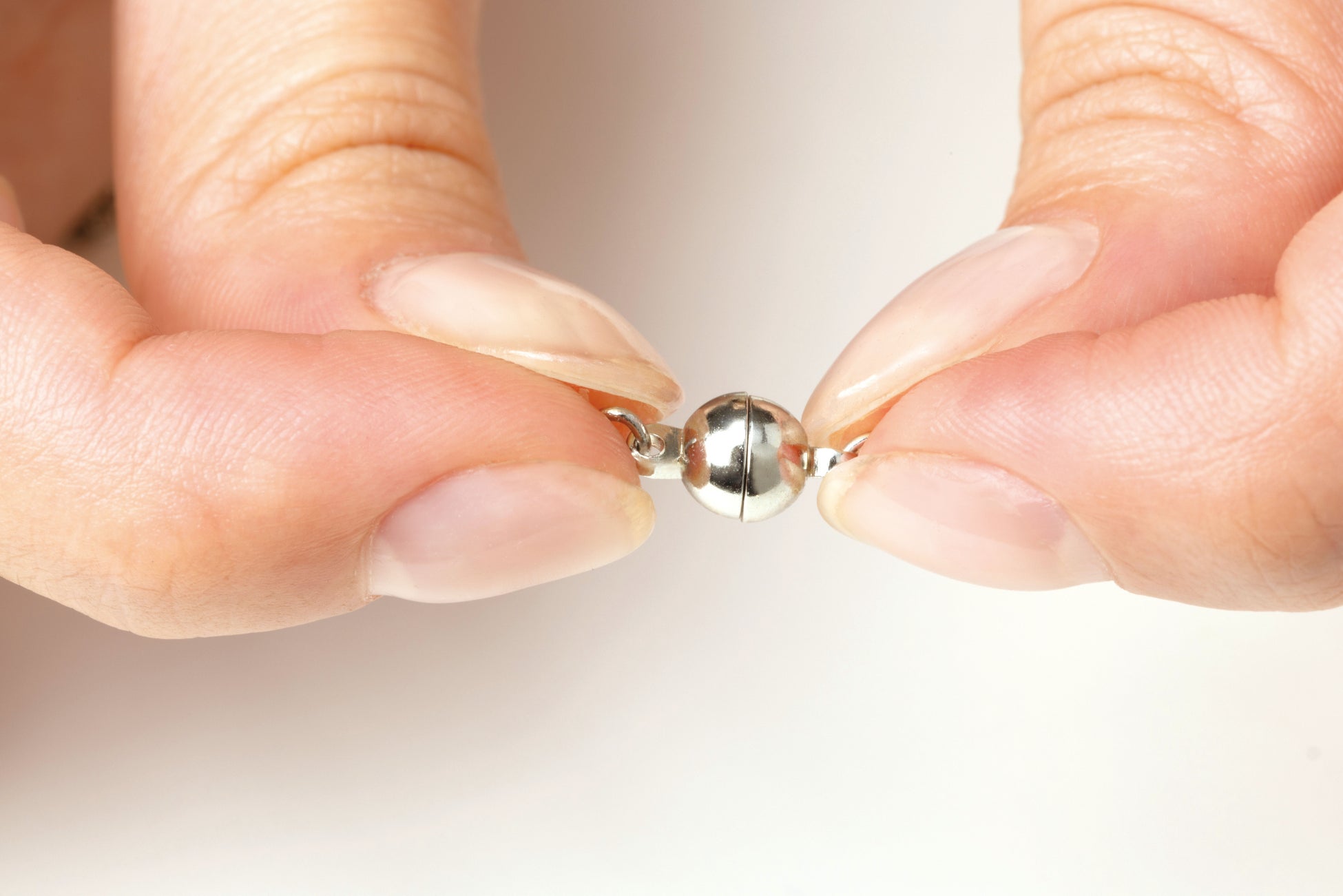 近づけるだけで装着が可能なマグネット留め具を採用。ネックレス金具を着けるのが難しい方にもオシャレを楽しんでいただけます。