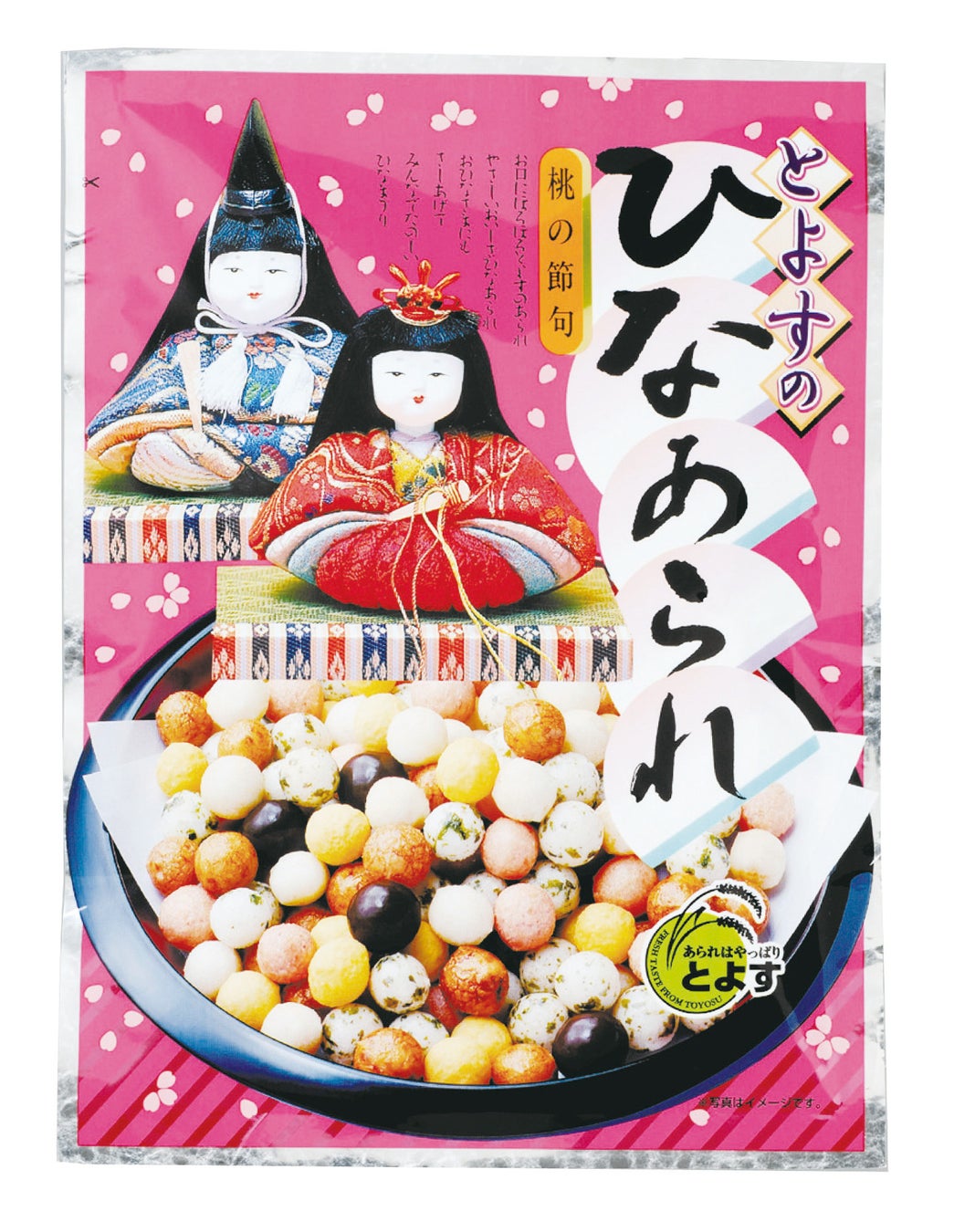 ひな菓子の一種として、あられをひな壇に飾ったり食べたりする習慣は関西では昔からありましたが、米菓メーカーとして初めて1960年(昭和35年)頃に商品化したのは「とよす」です。