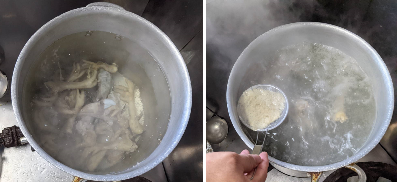 スープは全て自家製。毎朝、豚骨&鶏がらをこまめにアクを取りながらゆっくり煮込んでいきます。