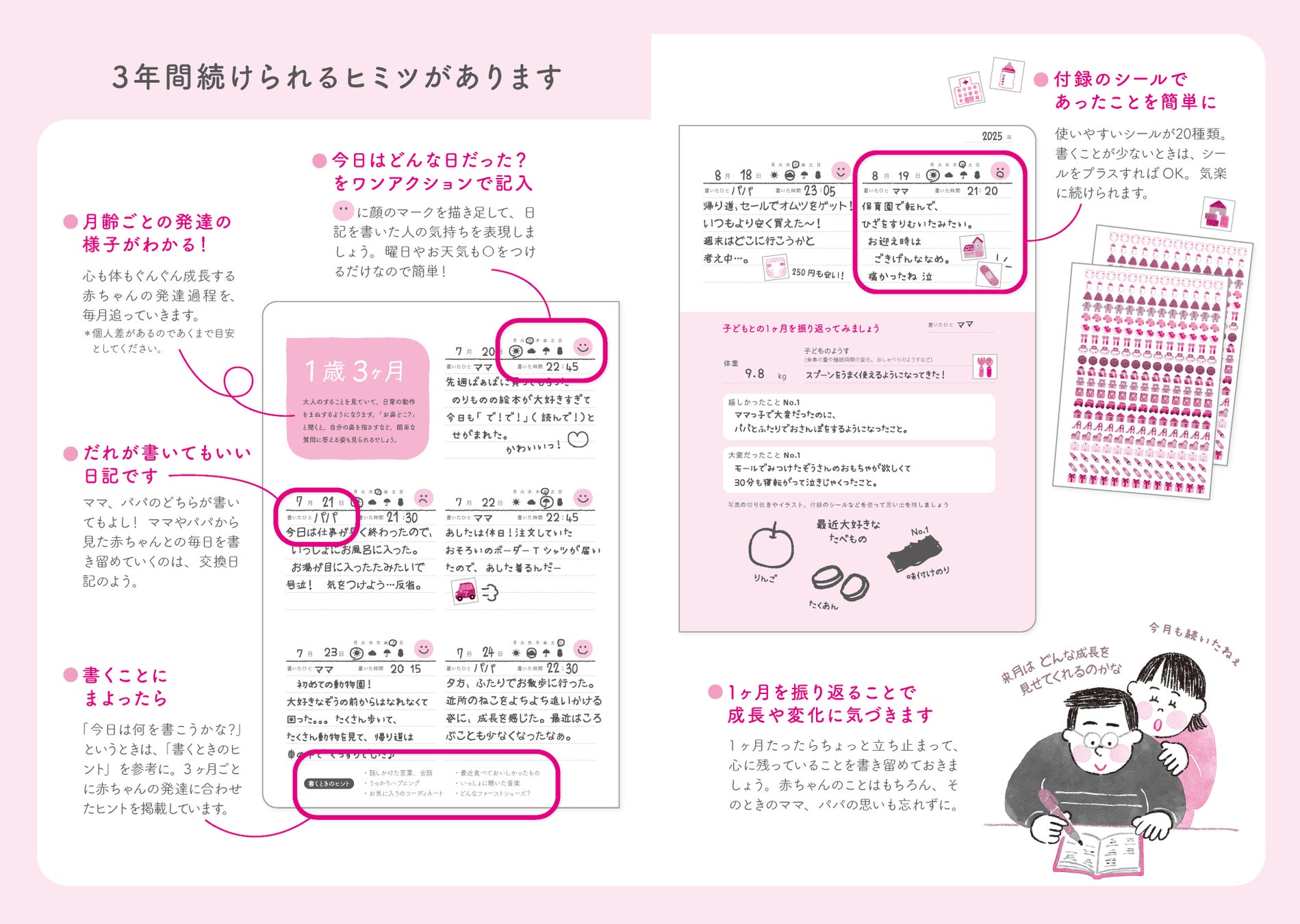 これなら続く!!日記のお悩みを絵本出版社が解決した『生まれてからの3年育児日記』を9月1日より発売!