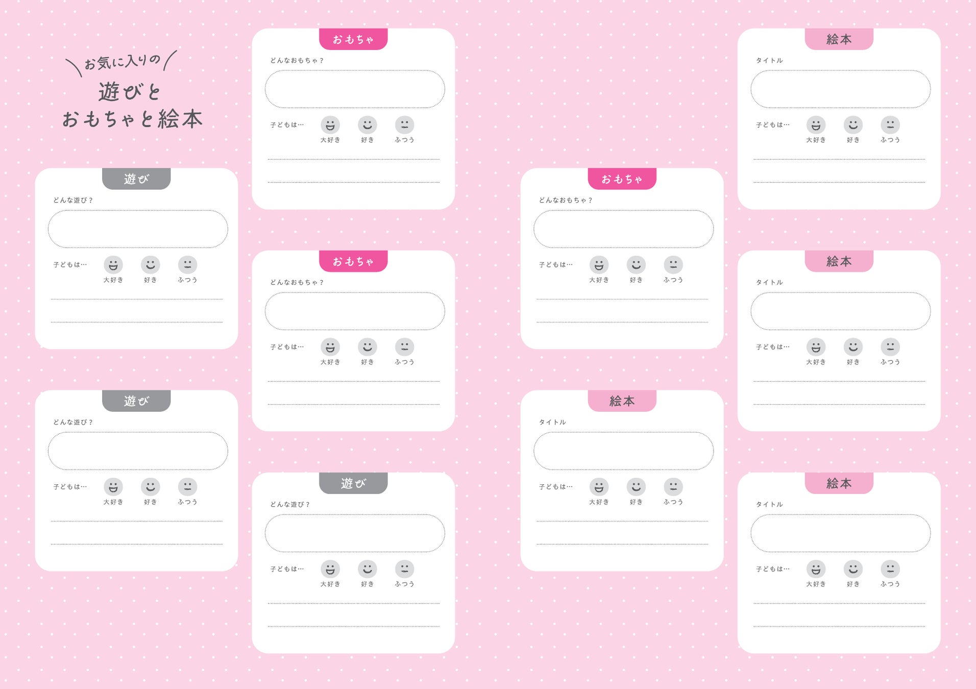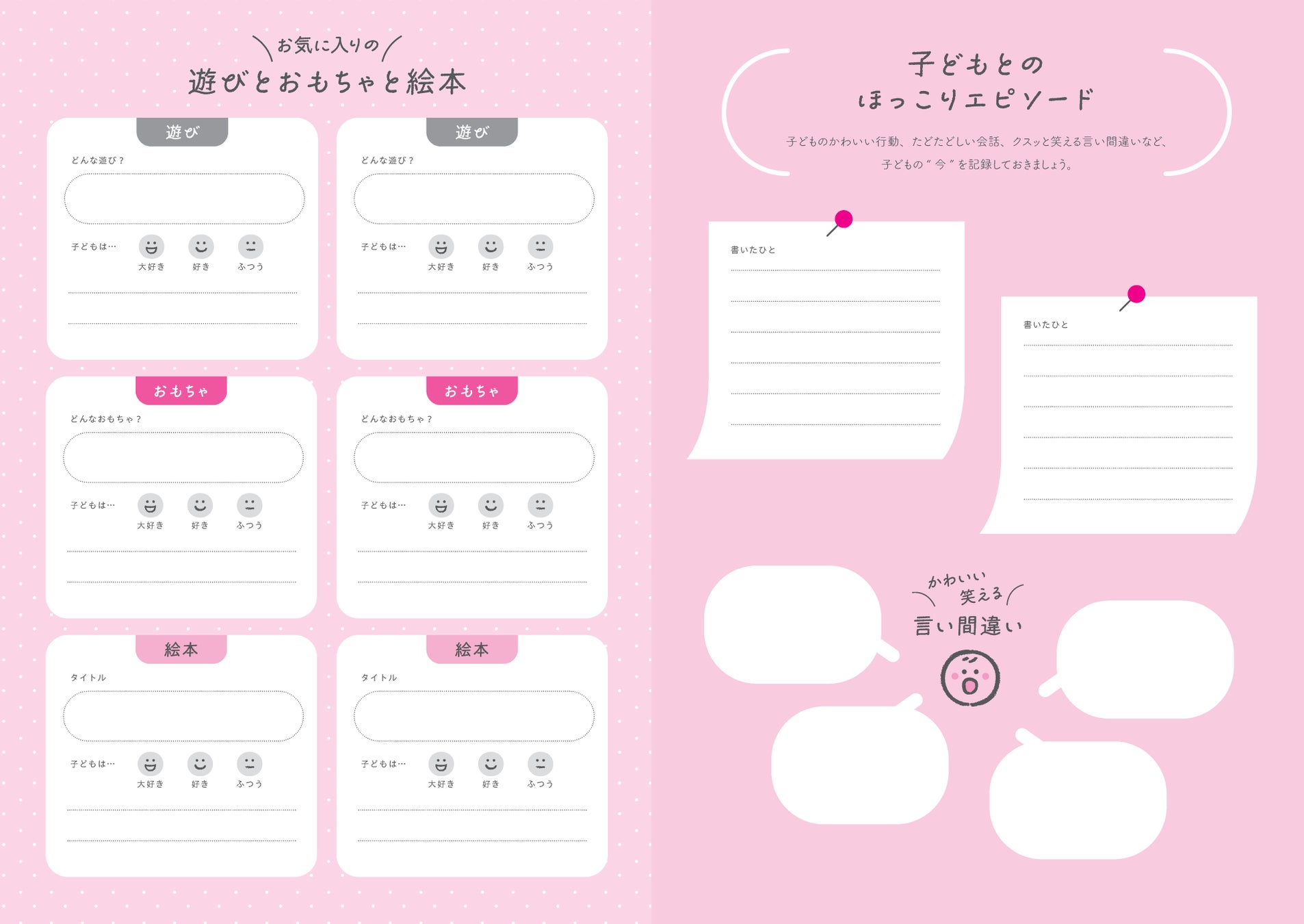 時間的にも体力的にも余裕がない中で書くママとパパを想って、中身は落ち着いた優しい色合いにしています。