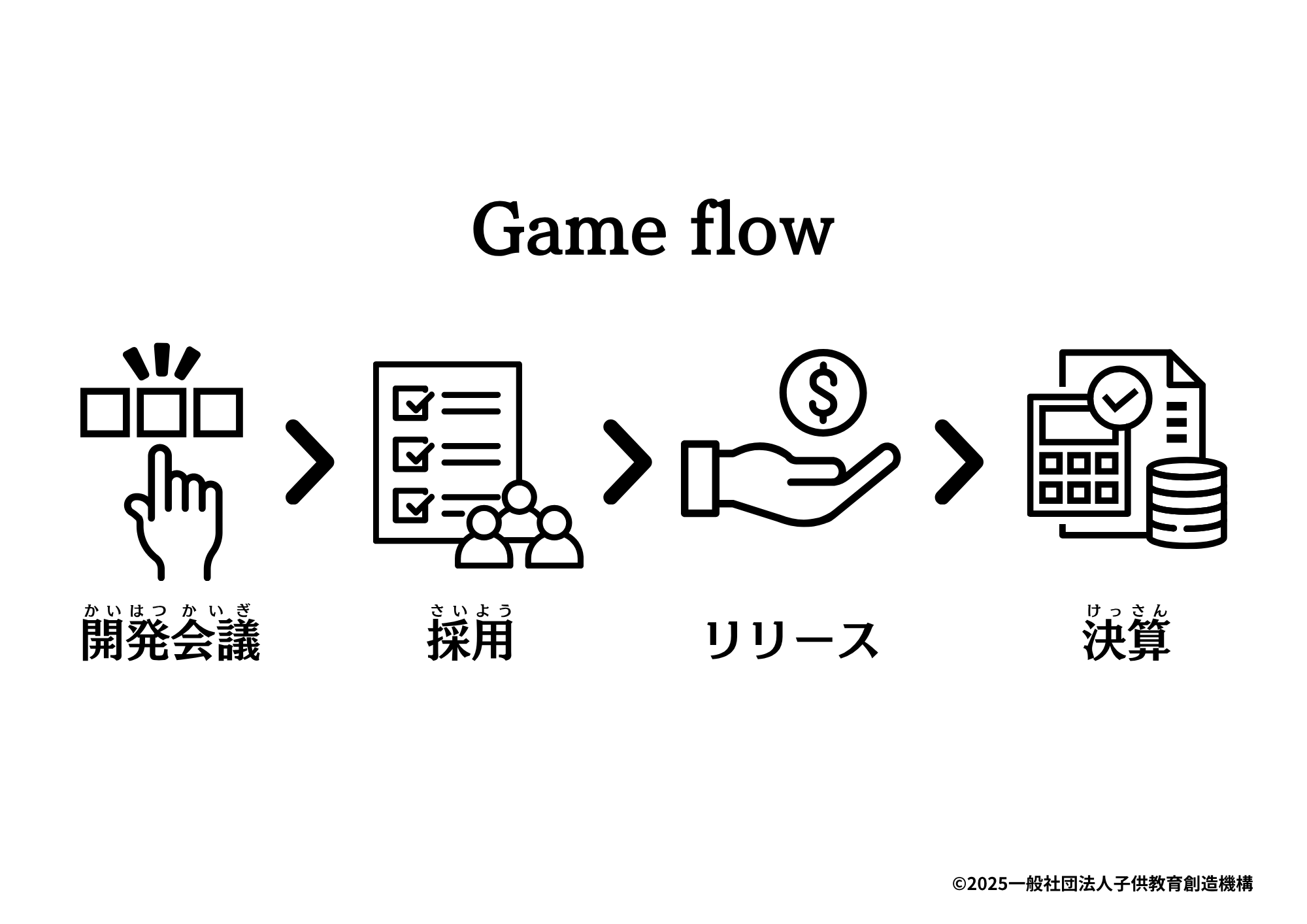 お子さんにとって身近で関心の高い「ゲーム開発」を事業テーマに設定。自分が「ゲーム会社の社長」になるというロールプレイを通じて、当事者意識を持ってビジネスの仕組みに没入できる設計です。