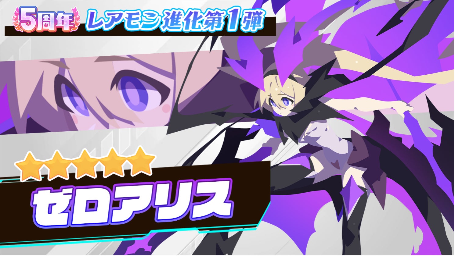 5周年を記念して、★5レアモン「ゼロアリス」の進化先に★6レアモン「[終焉]ゼロアリス」が、★5レアモン「ガイアドラゴン」の進化先に★6レアモン「[森羅]ガイアドラゴン」が追加されます。