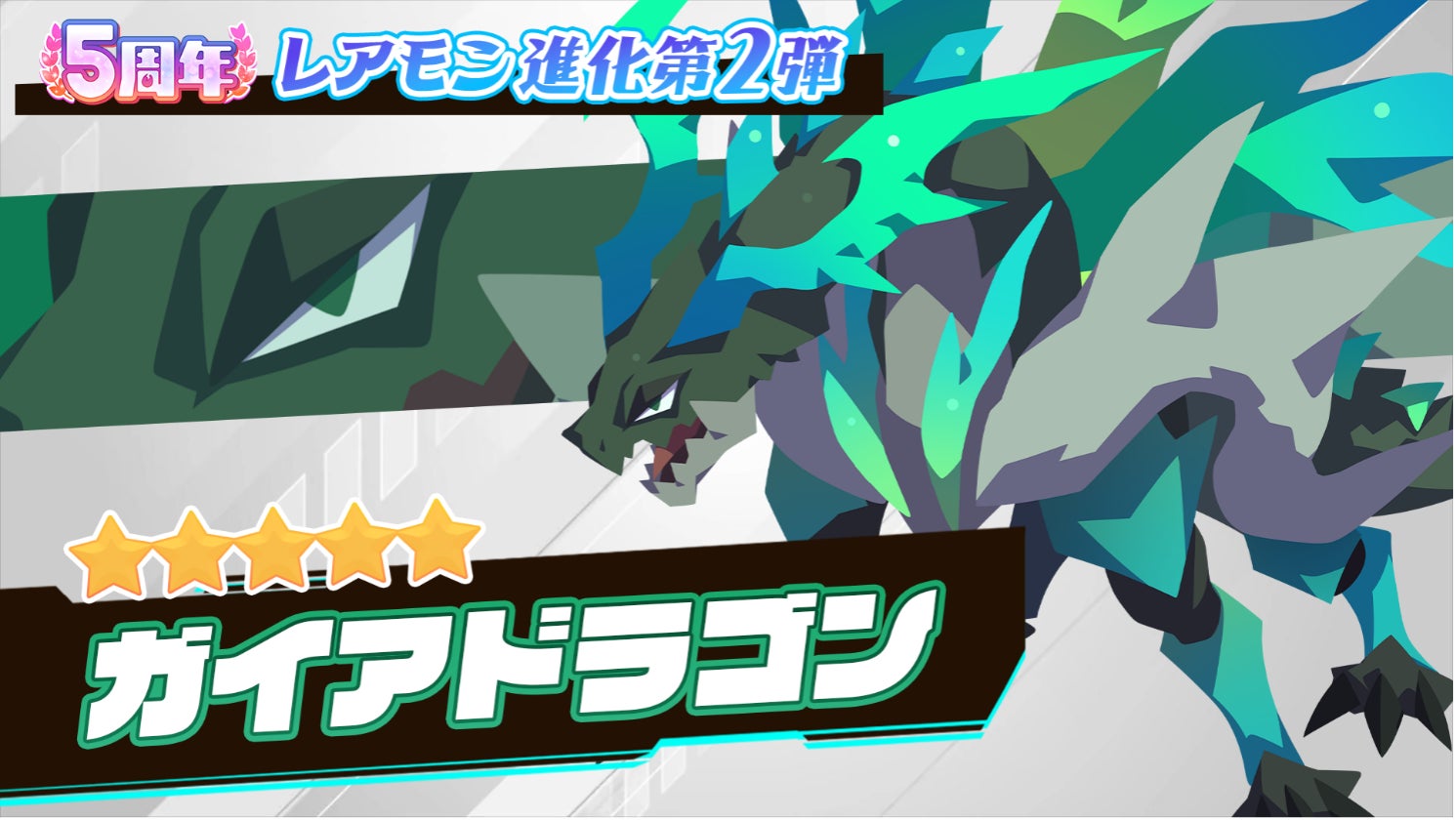 5周年を記念して、以下の2体の★5レアモンが新たに進化先として追加されます。