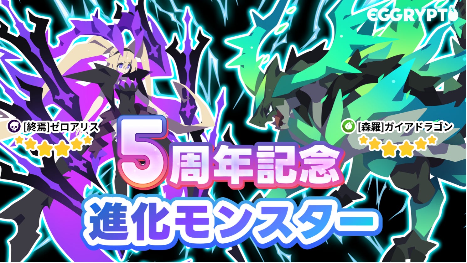 NFTゲーム「EGGRYPTO(エグリプト)」5周年!100連ガチャプレゼントやレアモン進化イベントを含む周年記念キャンペーンを開催!