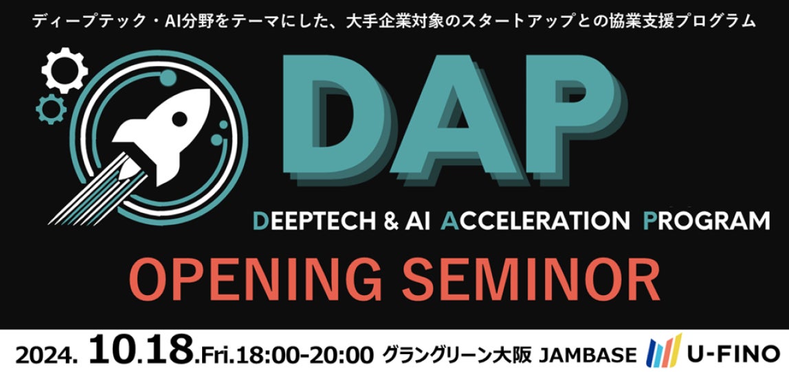 ハードテック・スタートアップ特化型投資ファンドを運営する株式会社Monozukuri Ventures(CEO:牧野成将)(以下、MZV)は、一般社団法人うめきた未来イノベーション機構(以下、U-FINO)と連携し、グラングリーン大阪を拠点に、ディープテック・AIをテーマにスタートアップとの協業を通じて事業会社の新規事業創出を加速させるプログラム「DAP(DEEPTECH & AI ACCELERATION PROGRAM)を実施いたします。