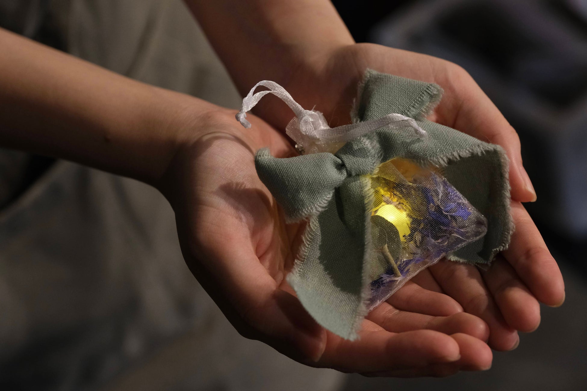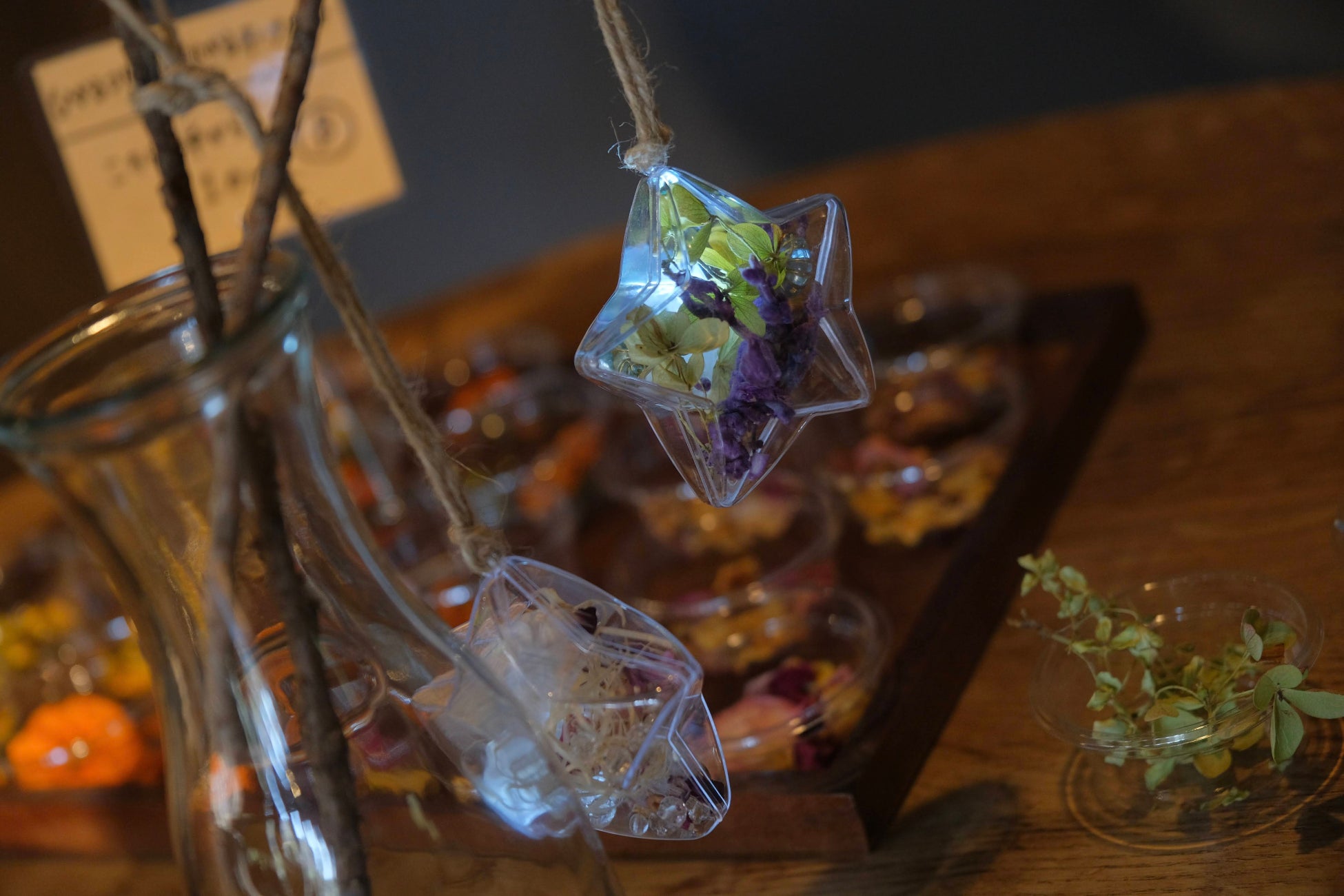 ライトが付属した、ひかるオーナメントが新しくリニューアル。園内の施設においてある「バラのドライフラワー」「羽」「針葉樹」「星」などを中にいれることで、自分だけのオリジナルひかるアイテムを完成させることができるひかるオーナメントが星形になって新しく販売します。前回に引き続き、花のまほうカードが付属。