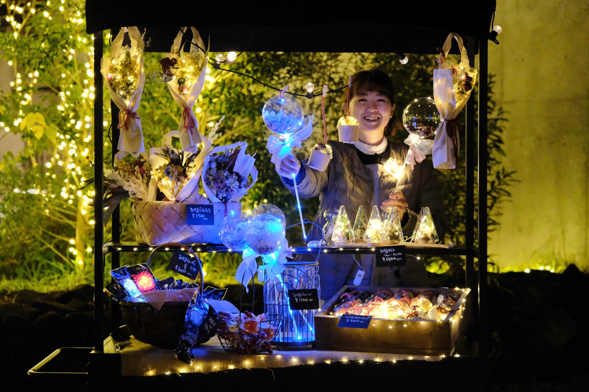 イルミネーションの灯りにつつまれた園内で、クリスマスマーケットをお楽しみください。