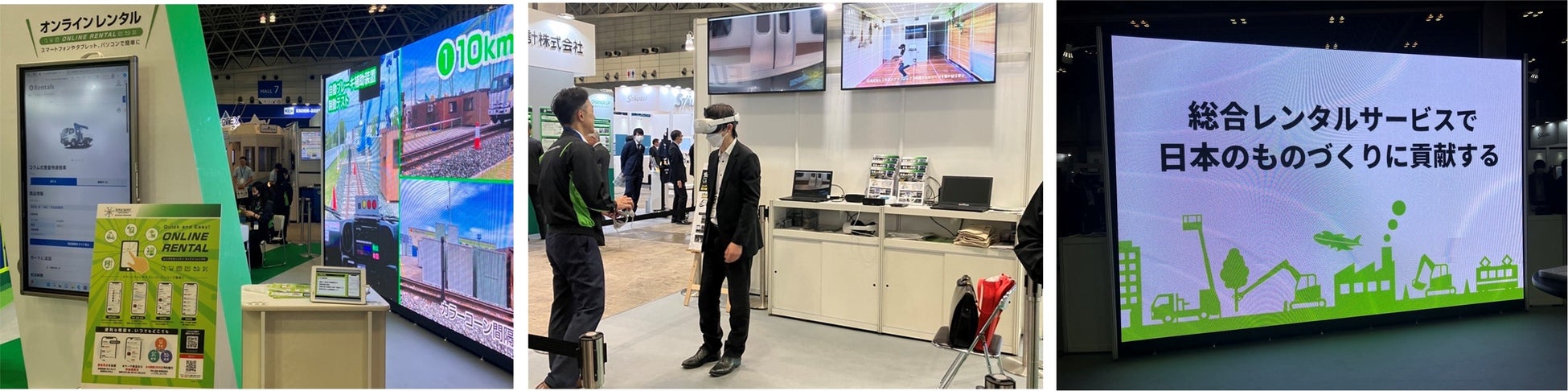 他にも、登録開始からお客様にご好評をいただいております、オンラインレンタルの展示・説明(写真④)や、新たなコンテンツが加わったVRコンテンツリンクの体験ブース(写真⑤)も設置いたしました。更にお立ち寄りいただいたお客様が思わず足を止めていた屋外用大型サイネージ(写真⑥)は、映像の美しさもさることながらその大きさにも圧倒されており、現場で採用したいなどのお問い合わせも多くいただきました。