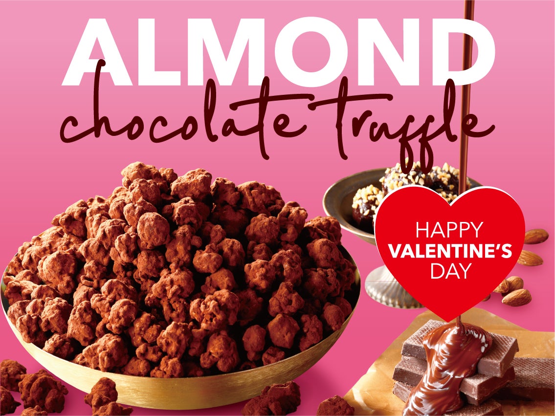 『アーモンド チョコレートトリュフ』は、ほんのり甘いミルクチョコレートでコーティングした「クラッシュアーモンド キャラメルクリスプ™」にビターなココアパウダーをたっぷりまぶしたチョコレート感たっぷりのバレンタイン限定レシピ。たっぷりついたつぶつぶアーモンドの食感となめらかなトリュフのようなチョコレートのくちどけの組み合わせも楽しんでいただけます。