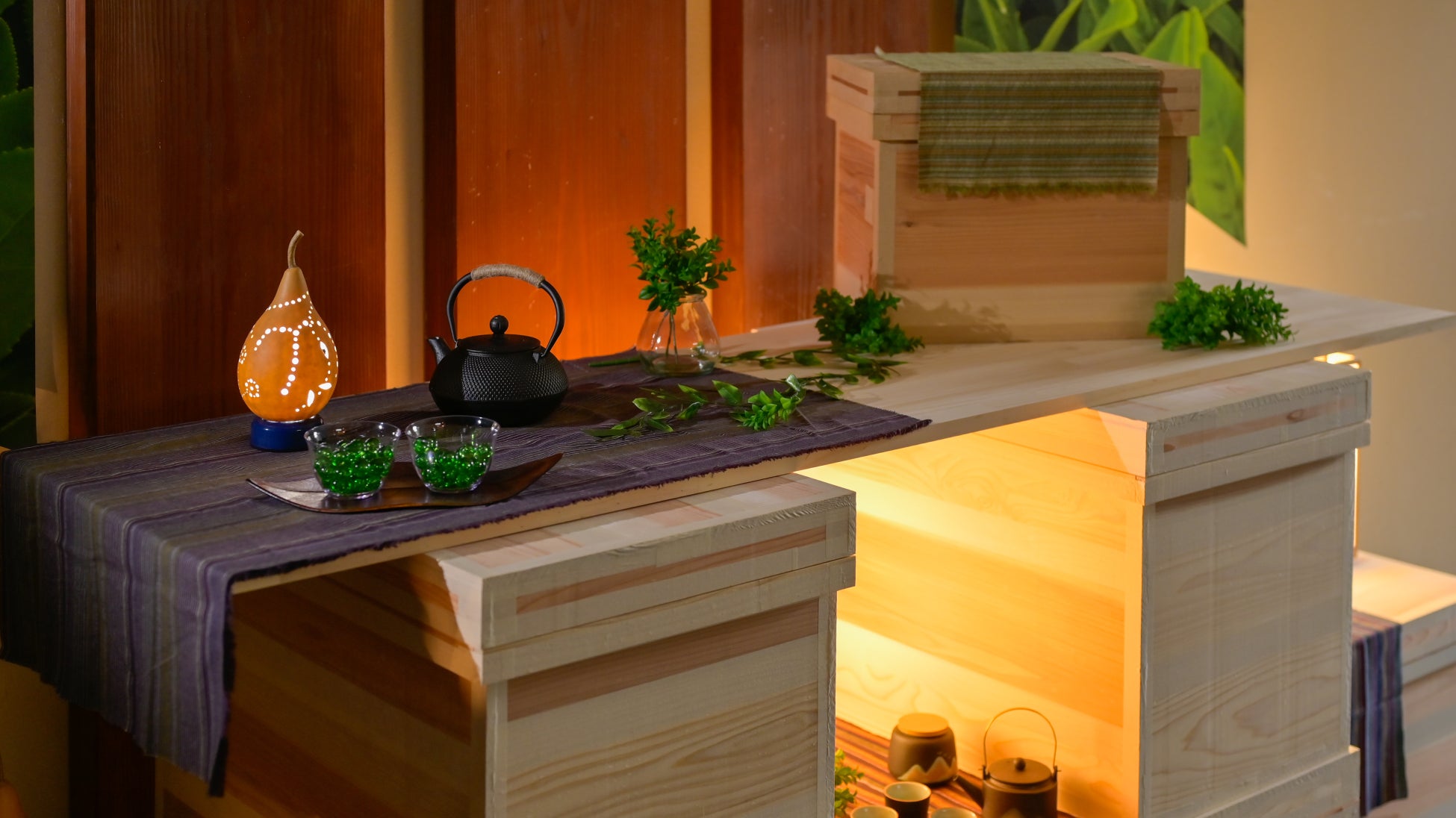 思い出浪漫館では、“奥久慈茶で癒される大人の滞在”をテーマに、大子町の豊かな自然が育んだ銘茶『奥久慈茶』を主役としたイベントを期間限定で開催いたします。豊かな香り、深いコク、そして鮮やかな緑色が特徴の『奥久慈茶』は、その濃厚な味わいに驚く方も多いでしょう。その確かな品質は、古くから県内外で親しまれ、茨城を代表する茶として高く評価されています。本イベントでは、館内香る”茶香炉”をはじめ、奥久慈茶の魅力を「飲む」だけでなく、「香る」「つくる」「くつろぐ」という癒しの体験をご提供。