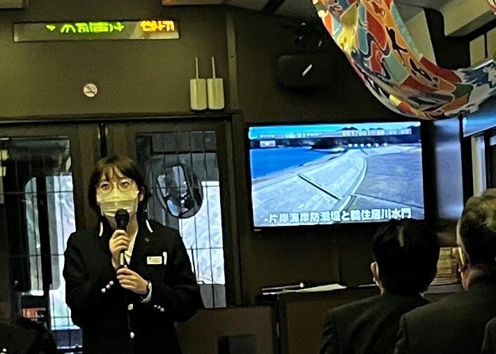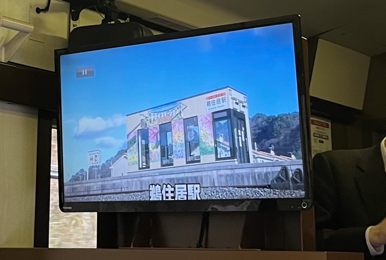 2012年から運行している震災学習列車は、これまで約8万6千人の方にご利用いただきましたが、今回ガイド環境をリニューアルして、モニターを使って復興状況などを説明するなど、より学習しやすい環境を整備しました。