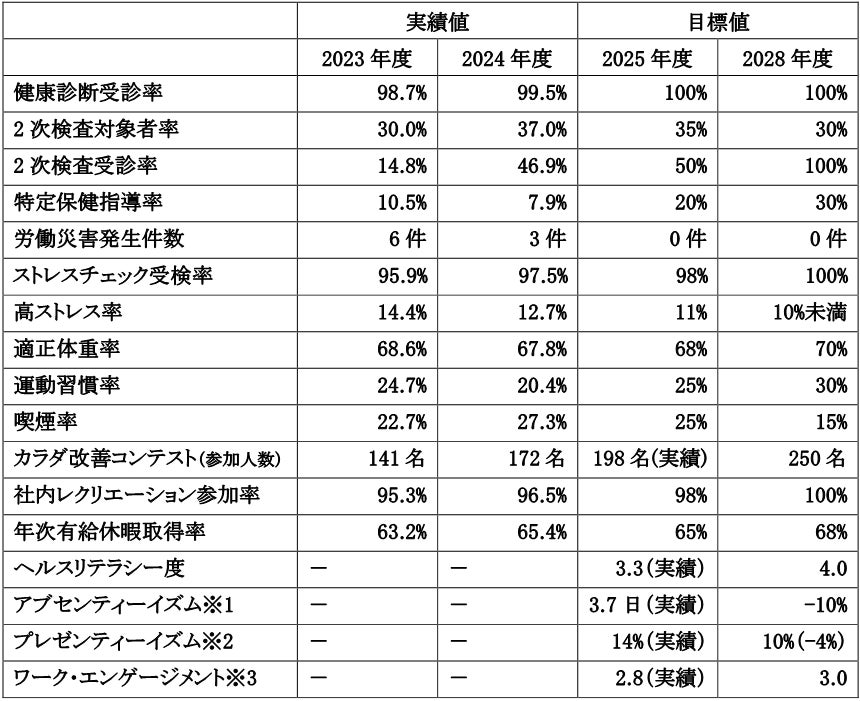これを受けて、2024年度の健康診断結果などの分析を行ったうえで健康経営目標を策定し、従業員の健康増進達成のための施策に取り組んでいます。