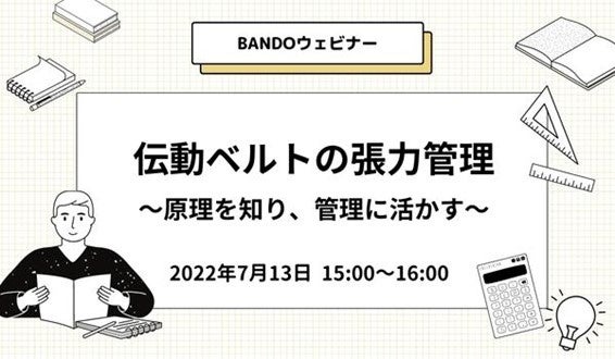 バンドー化学株式会社(本社:兵庫県神戸市)は、伝動ベルトの張力の原理やベルト張力の計算・計測・管理方法などを基礎から解説する無料ウェビナーを開催いたします。