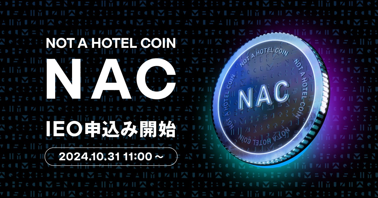 NOT A HOTEL DAO株式会社(代表取締役CEO:濵渦伸次)は、本日10月31日11:00より、GMOコイン株式会社(代表取締役社長:石村富隆)にて「NOT A HOTEL COIN(NAC)」のIEO(Initial Exchange Offering)申し込みを開始しました。また、同時にプロジェクトの詳細を記載したホワイトペーパーと新Webサイトを公開しました。