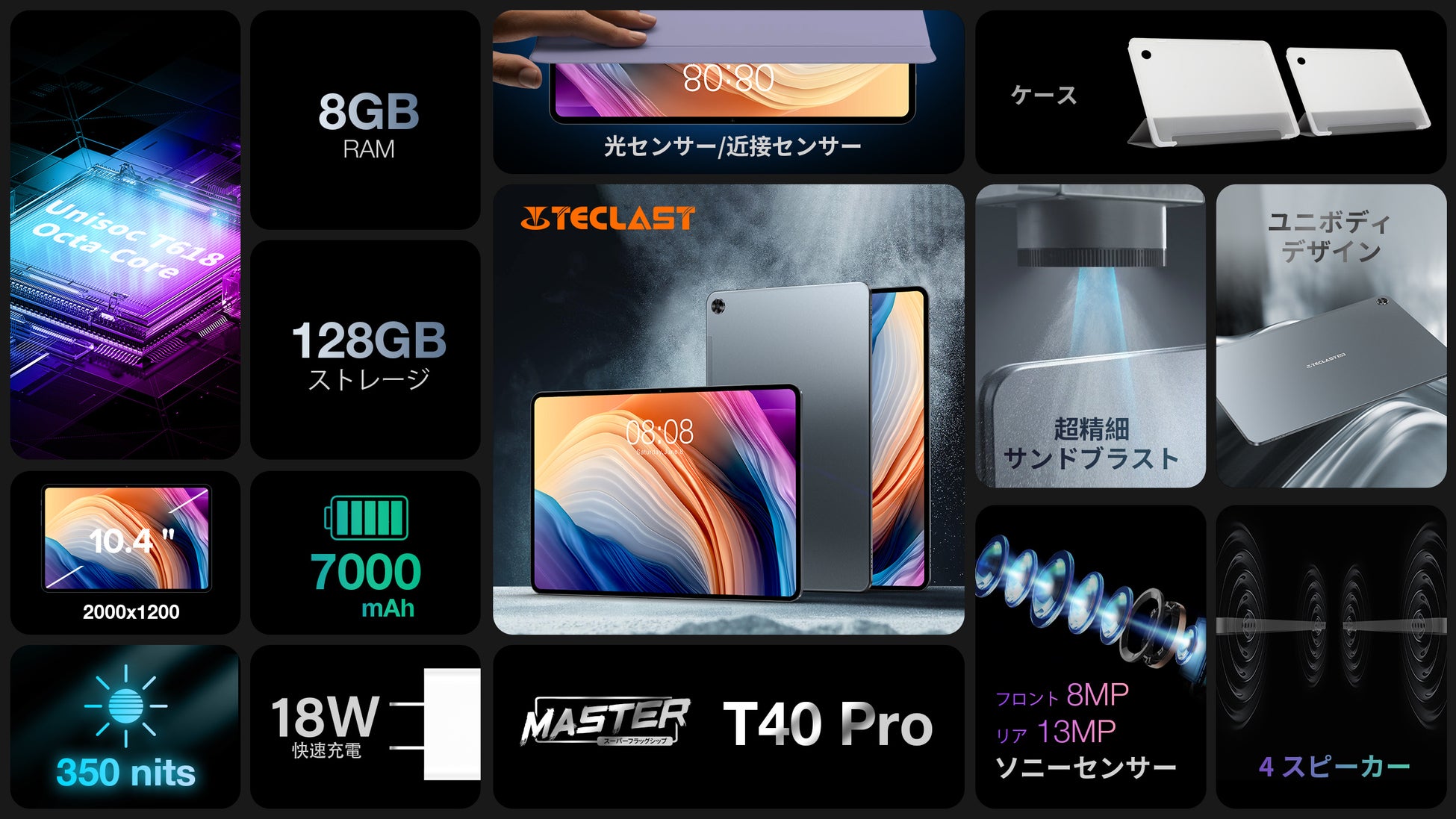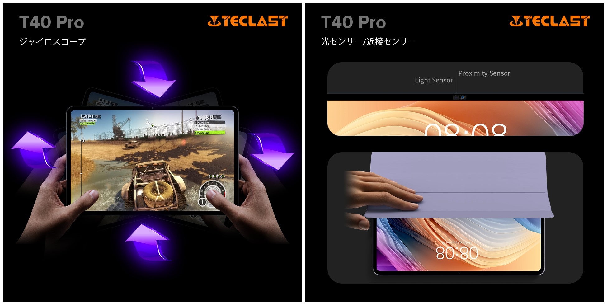 光センサーは周囲の明るさを検知して画面の明るさを自動的に調整します。目を保護するだけでなく、電力を節約することができます。近接センサーはユーザーの距離を検知でき、よりスマートなユーザー体験を提供可能です。この度、T40 Proの専用ケースも一緒に登場して、ケースを開閉して自動ロック/ロック解除でき、とても便利ですね。