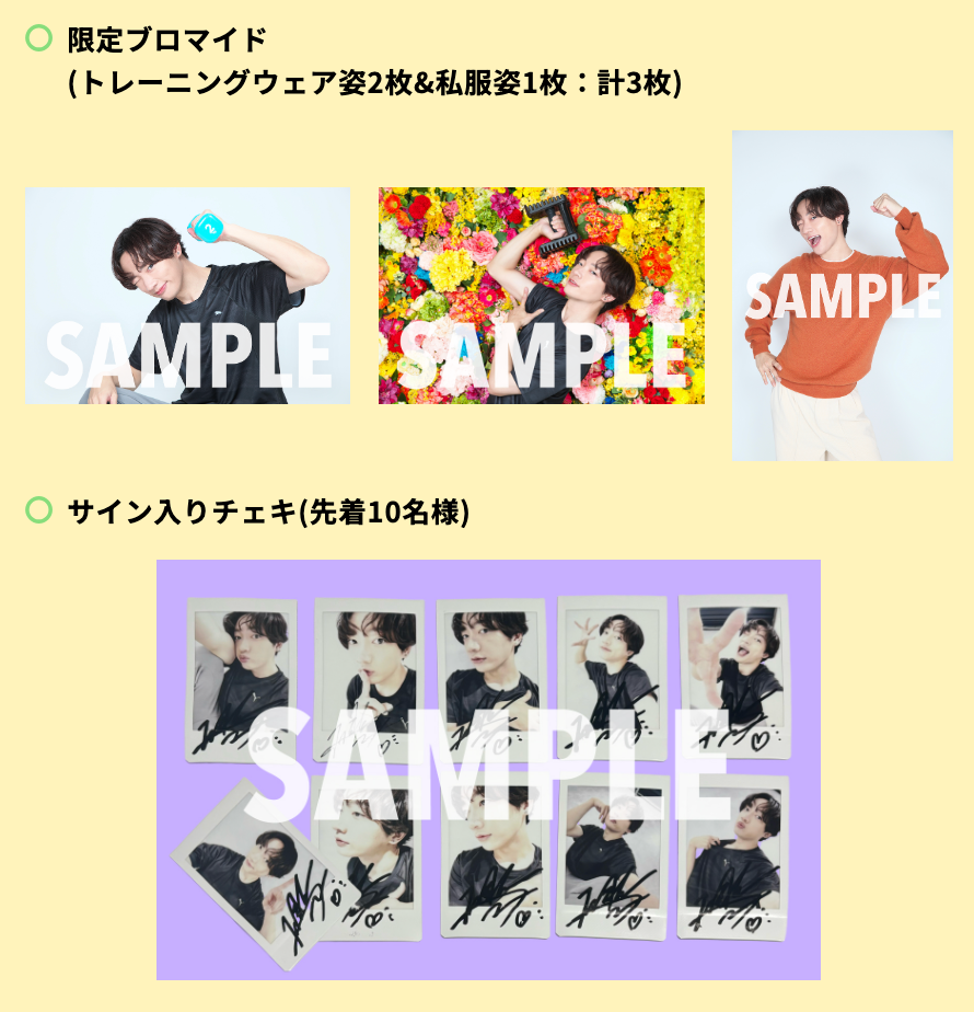 ・限定ブロマイド(トレーニングウェア姿&私服姿 各1枚ずつ:計2枚)