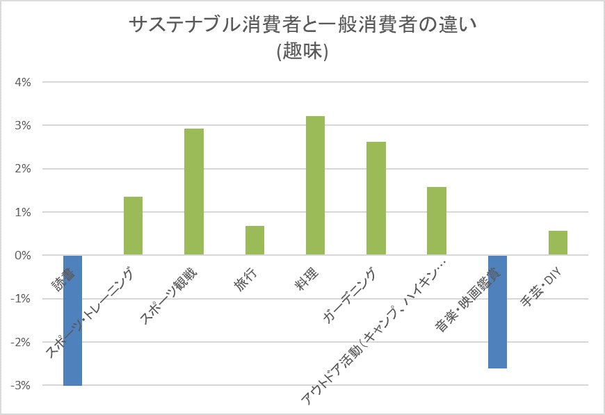 サステナ消費者は比較的アクティブな活動を趣味に持つ傾向