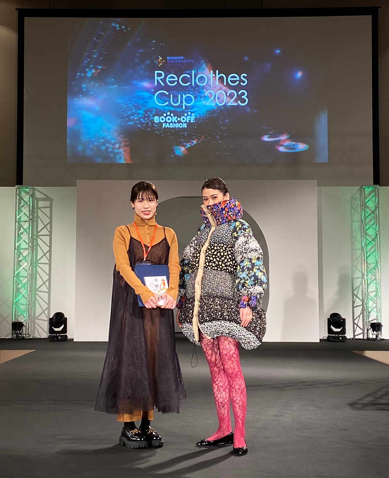 10月29日 福岡国際会議場で開催された ブックオフ主催 アップサイクルデザインコンテスト「Reclothes Cup」では、クリエイティブデザイナーコース2年 川口 智加さんが準グランプリを獲得しました。