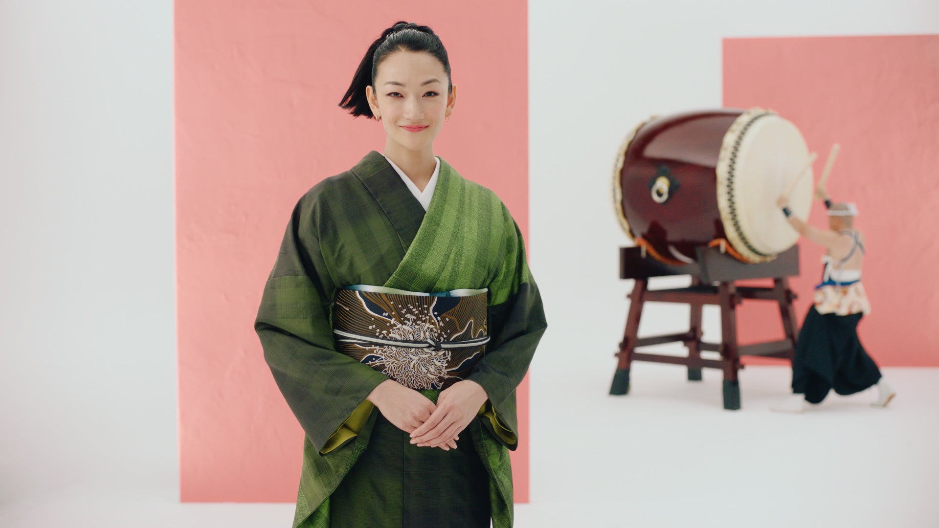 CMでは、冨永愛さんが和太鼓とセッションをするかのように、美しいポージングを披露しながら「お試し3回無料着付け体験コース」をご紹介。