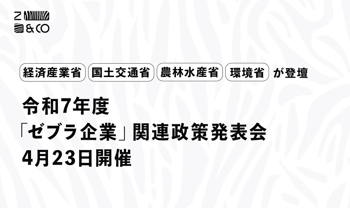 株式会社Zebras and Company(ヨミ:ゼブラ アンド カンパニー、本社:東京都港区麻布十番、代表取締役:阿座上陽平、田淵良敬)は、ゼブラ企業に関する政府の取り組みを広く共有することを目的として、2025年4月23日(水)に「令和7年度 ゼブラ企業関連政策発表会」を開催いたします。