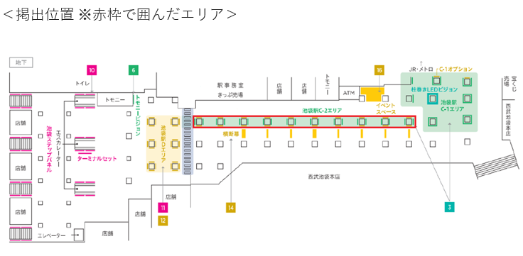 掲出場所:西武鉄道池袋駅 地下改札外通路 (西武百貨店前通路)