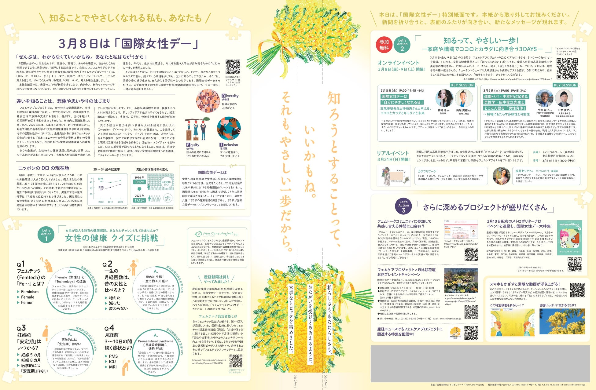 また、女性の心と体のケアを考える「フェムケアプロジェクト」の企画である、国際女性デーを記念した特別仕様のラッピング紙面(3月8日(金)の産経新聞朝刊)においても、当協会の「日本フェムテック協会認定資格3級」の問題の一部が紹介されています。