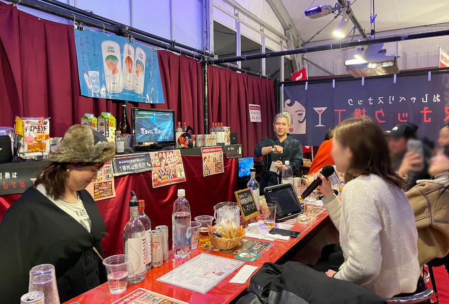 ブース内は昭和風情あふれる装飾で統一し、スナック文化の象徴・カラオケも完備。誰かが歌えば自然と拍手や合いの手が起こり、知らない人同士でも心の距離が縮まる、まさに“現代の社交場”としてのスナック体験をお届けします。登場するママは日替わりで、昭和スナックの王道を守るベテランから、若者に支持されるネオスナックの担い手までさまざま。ドリンクはアルコール・ノンアルともに用意し、Z世代や訪日外国人も安心して楽しめます。(お一人様1,800円/ドリンク1杯・おつまみ・カラオケ込、追加ドリンク500円〜)