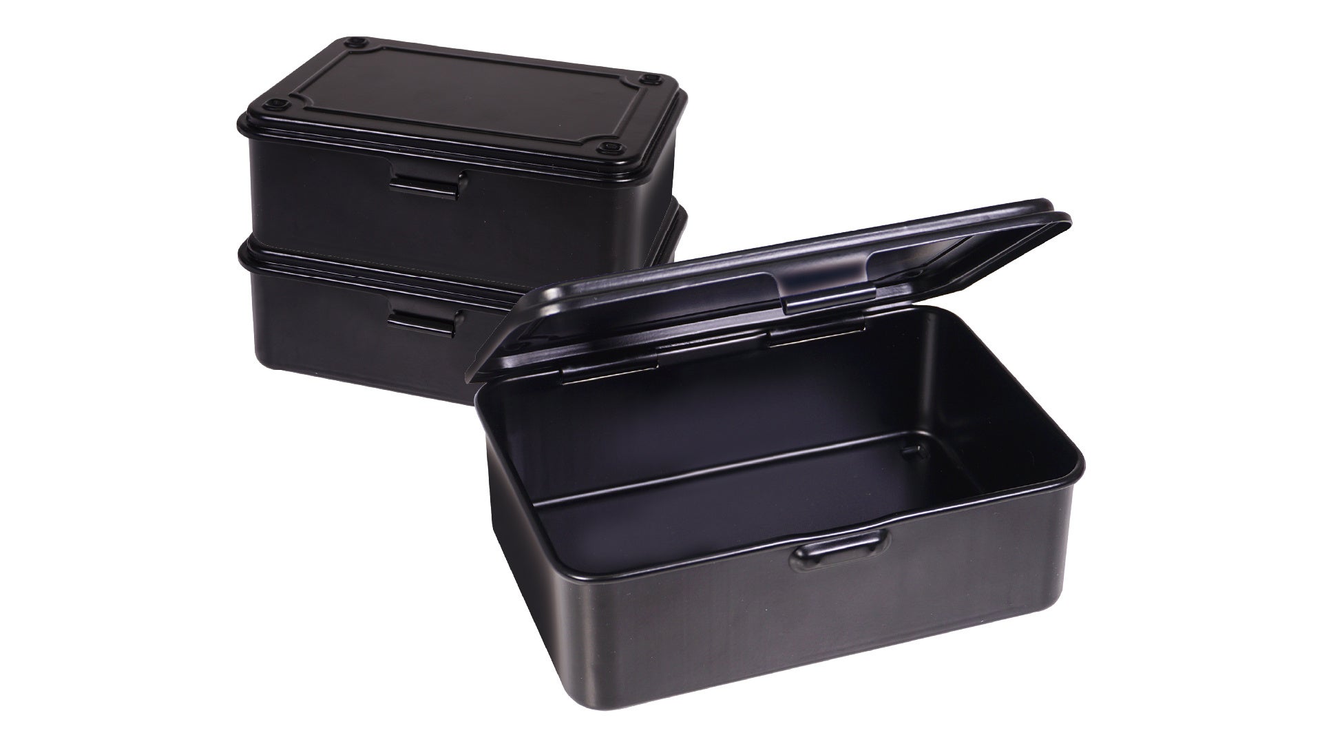 無骨なスチール素材の「スチールツールボックス」「スクエアツールボックス」をはじめ、カトラリーや調味料ケースに便利なクッカーサイズの「マルチケースM/L」。その他キャンプサイトにあると便利な収納アイテムが続々。